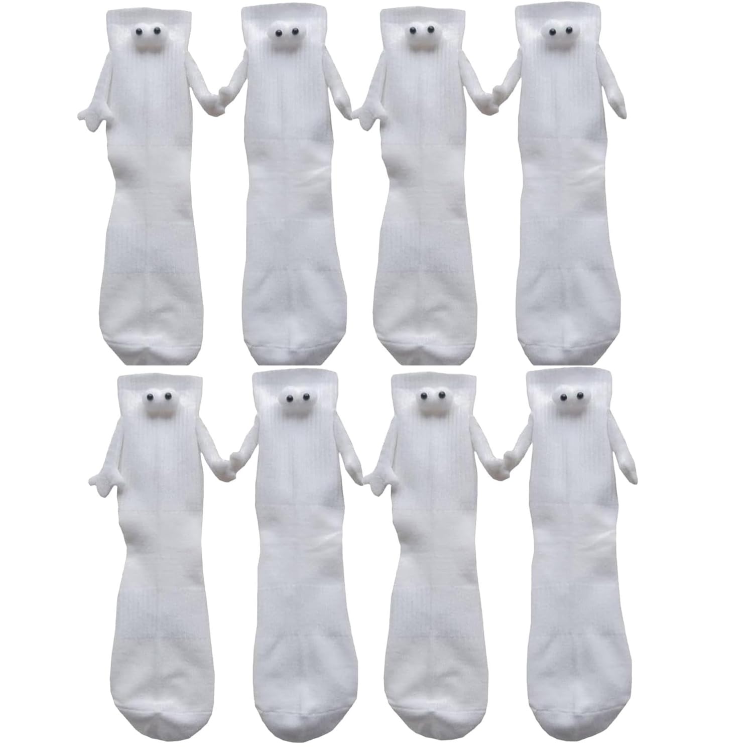 VANYCIG Couple Holding Hands Socks Mid-tube Socks Magnetic Three-dimensional Doll Sock 4 PAIR WHITE