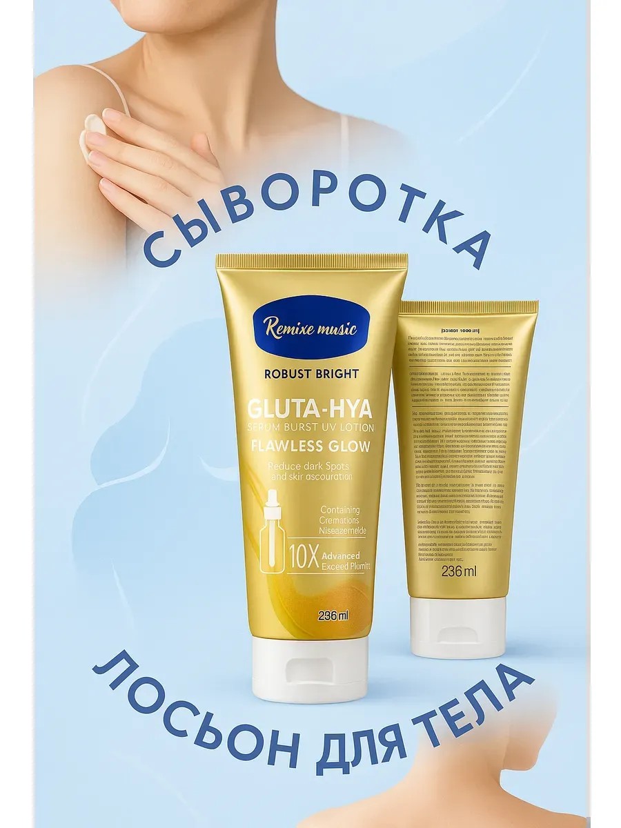 This brightening body lotion with vitamin C, hyaluronic acid, and niacinamide is a cutting-edge skincare product that helps maintain smooth, firm, and radiant skin. Its balanced formula provides deep hydration and nourishment, helping even out skin tone, combat dryness and dullness, help reduce pigmentation, and leave skin looking fresh. It's easy to apply, absorbs quickly, and leaves no stickiness, making it especially convenient for daily use. This body lotion with hyaluronic acid restores the skin's natural moisture balance, retains moisture, and prevents dehydration, while vitamin C is known for its powerful antioxidant properties, helping combat signs of fatigue and prevent premature aging. Niacinamide helps tighten pores, reduce inflammation and redness, and glutathione effectively maintains an even, healthy skin tone. This lotion is suitable for all skin types, including dry and sensitive skin, and can be used year-round. In summer, it protects against the sun's harmful effects, helping skin maintain softness and elasticity. In winter, it combats dryness, flaking, and tightness. Regular use improves the overall condition of your skin, making it more nourished and pleasant to the touch. Containing plant oils and extracts, this lotion nourishes the skin with vitamins and microelements, providing comprehensive care. This versatile product helps care for hands, feet, elbows, and other areas requiring special attention. This whitening body lotion will become an indispensable part of your daily skincare routine, leaving you feeling fresh and comfortable, and highlighting your skin's natural beauty.
