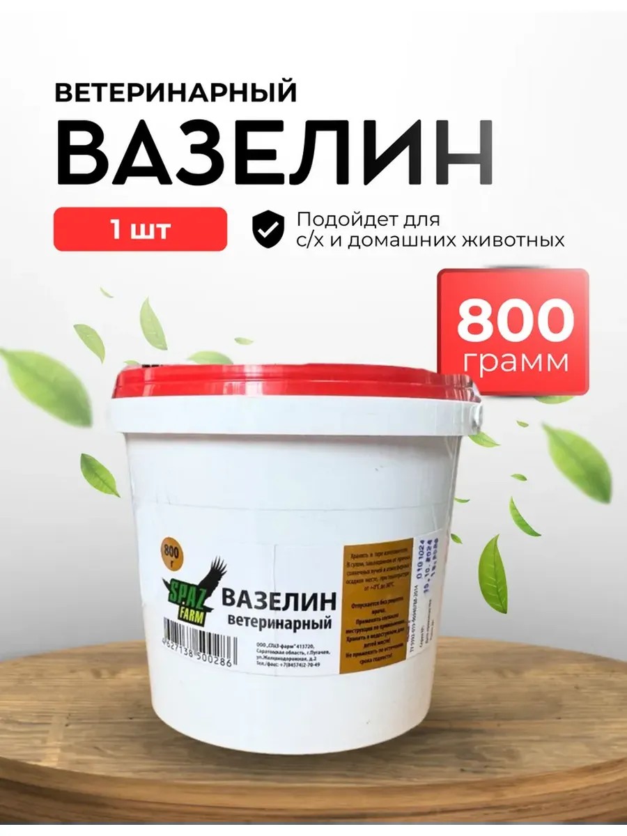 Вазелин ветеринарный «СПАЗ-Фарм» (упаковка 800 г) — мазь для наружного применения.