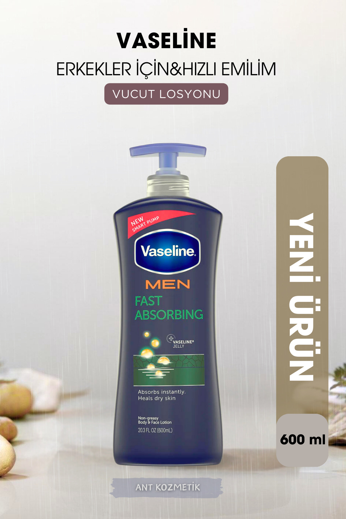 • Erkeklerin Cildi Için Özel Tasarlandi:Vaseline Erkekler Için Hizli Emilim Vücut Losyonu, aktif bir yasam süren erkeklerin cilt ihtiyaçlarini karsilamak üzere gelistirildi.