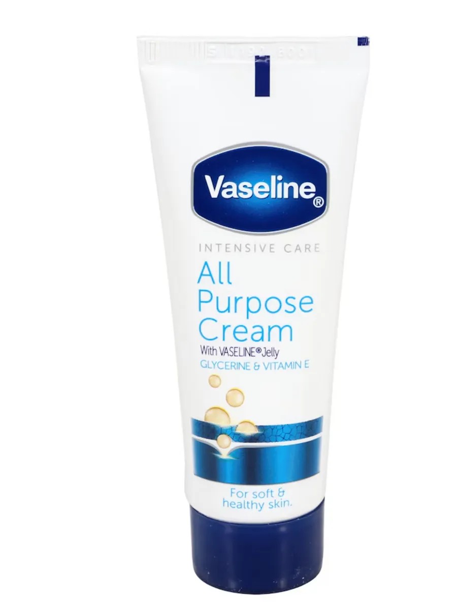 Vaseline All Purpose Cream provides intensive care for soft, healthy skin. Formulated with Vaseline jelly, it provides long-lasting hydration and leaves skin soft and nourished with glycerin and vitamin E. Use daily on rough elbows, knees, cracked heels, or dry hands.