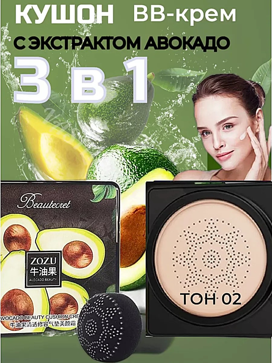 New design!!! This cushion foundation (BB cream) comes with a sponge. Suitable for all skin types, it moisturizes, nourishes, and mattifies the skin, perfectly covers dark circles under the eyes, eliminates redness, pigmentation, and other imperfections. The cream adapts to your skin tone without overdrying it. It can be used as a concealer. The foundation provides long-lasting care and hydration. The soft puff sponge ensures economical use; it has high covering power. How to use the cushion: Apply a small amount of cushion to the skin, focusing on problem areas. Blend the concealer with a sponge. It is recommended to fix the result with powder for greater durability. Korean cosmetics. Perfect for everyday use, special occasions, and also a fun gift idea. Convenient, compact, and beautiful packaging makes it easy to take with you: to the office/work/travel/travel. Avocado, face concealer, foundation. Shade No. 1 is light beige, Shade No. 2 is natural beige. Cushion/foundation/BB cream/foundation concealer.