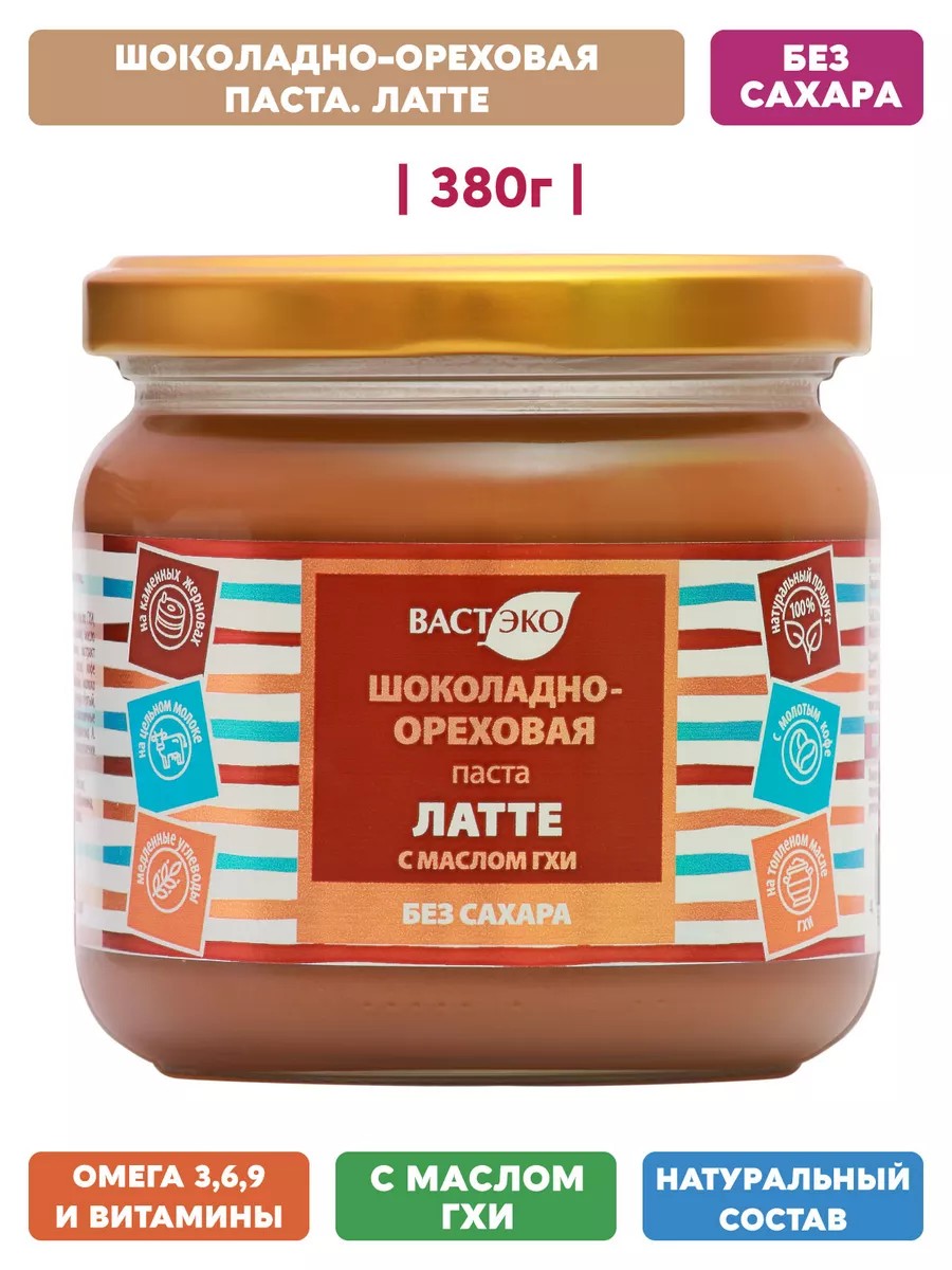 Уникальная Шоколадно-Ореховая паста Латте с маслом ГХИ без сахара – полезный и здоровый десерт со вкусом кофе с молоком. Эта 100% натуральная пп паста из шоколада c орехами - вкусный и питательный топпинг к завтракам и десертам.