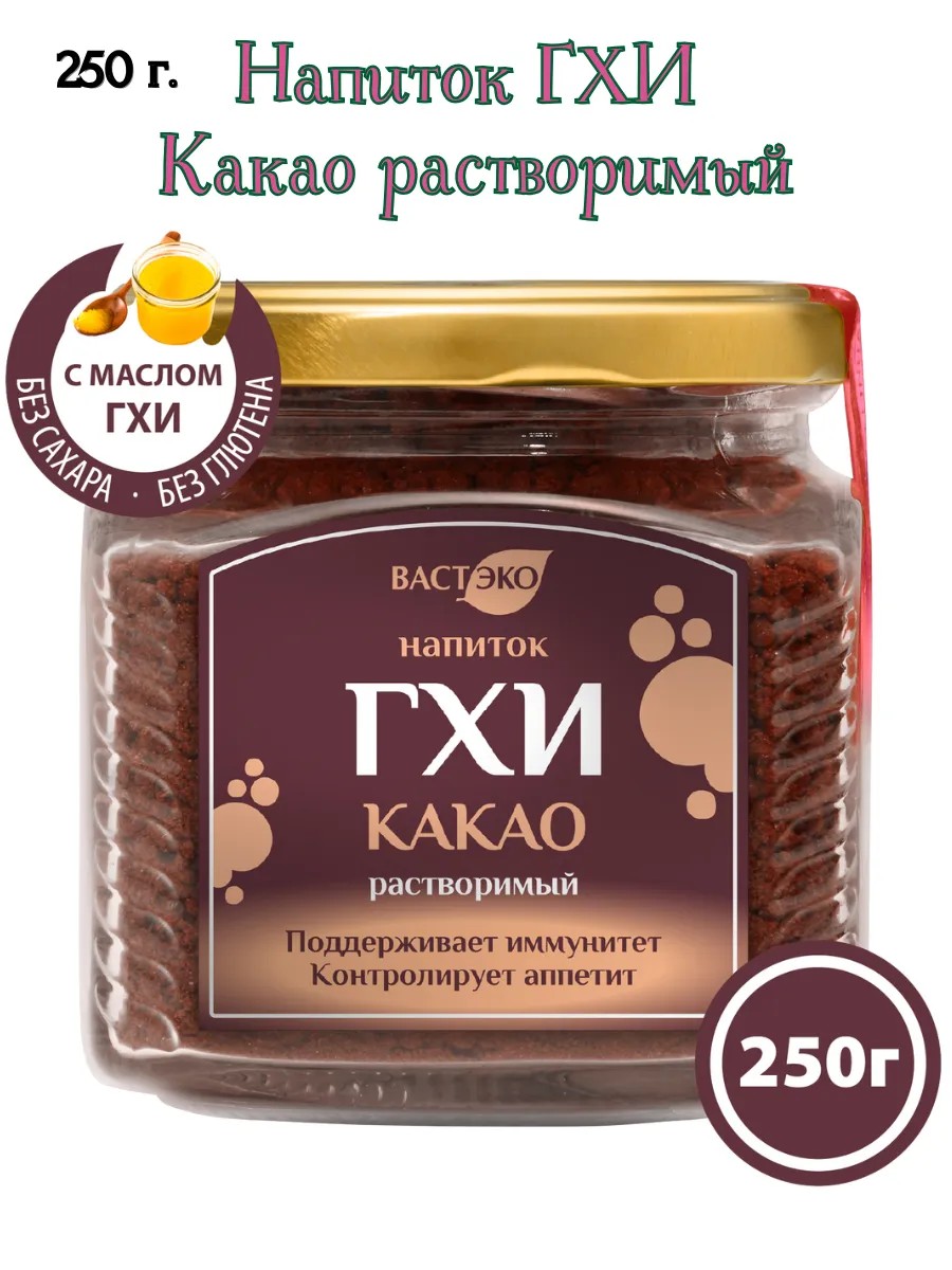 ГХИ Какао – это бодрящий напиток, обладающий высокой энергетической ценностью. Он насыщает организм и избавляет от чувства голода на несколько часов. В составе топленое масло ГХИ и натуральное отборное Какао превосходного качества – это помогает снимать усталость и поднимает настроение. Напиток имеет приятный сладкий вкус без посторонних привкусов благодаря наличию в составе натурального подсластителя мальтитола. Идеальная пара в сочетании с низко углеводным завтраком. Прекрасный повод для встречи с друзьями и посиделок в узком семейном кругу. Отличная идея для подарка. Напитки готовы к употреблению, при этом вы можете добавлять в них молоко, сливки, корицу и т.д. исходя из своих предпочтений.Преимущества продукта: Какао содержит много антиоксидантов, которые влияют на процессы старения в организме и продолжительность жизни. Масло ГХИ, благодаря своим уникальным свойствам, оказывает благотворное воздействие на организм, усиливает действие других компонентов напитка, способствует укреплению иммунитета и насыщает витаминами. Сочетание полезных свойств масла ГХИ и Какао при регулярном применении улучшает работу головного мозга, снижает уровень холестерина.Способ применения: Наши напитки удобно и просто приготовить – достаточно засыпать в кружку и залить горячей водой.Состав: какао-порошок, подсластитель мальтит, топлёное масло ГХИ Содержит: 100% Натуральные ингредиенты; Какао; Мальтит; Минеральные вещества. Не содержит: ГМО; Антибиотики; Ароматизаторы; Аспартам; Вкусовые добавки; Глутамат натрия; Гормоны роста; Заменитель молочного жира; Искусственные добавки; Искусственные красители; Консерванты; Сахар; Пальмовое масло; Молочный белок; Яйца
