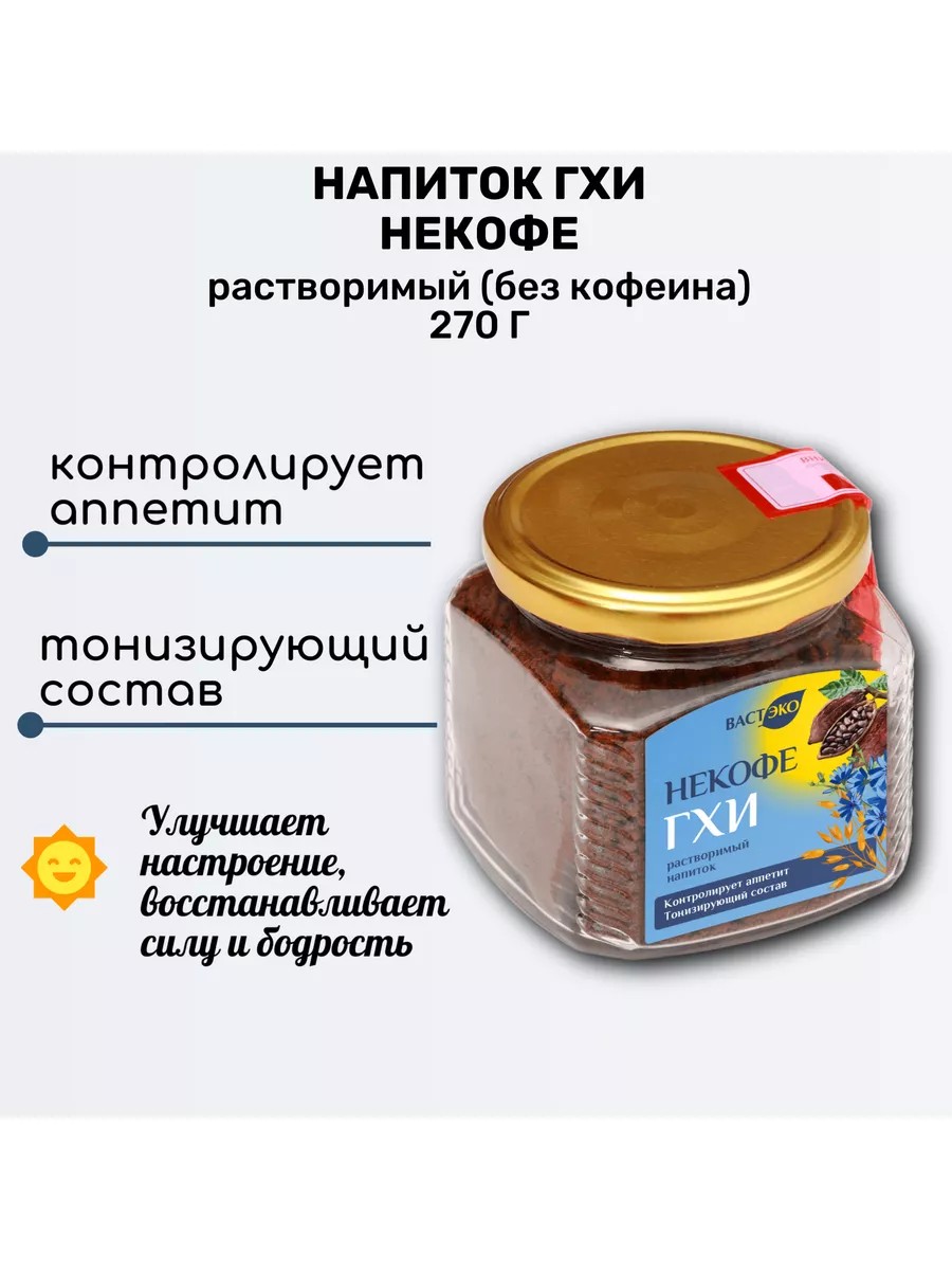 ГХИ НЕКОФЕ – это бодрящий напиток, обладающий высокой энергетической ценностью. Он насыщает организм и избавляет от чувства голода на несколько часов. Напиток послужит прекрасной заменой кофе, он придаст бодрости и поднимет настроение! Без кофеина и сахара.