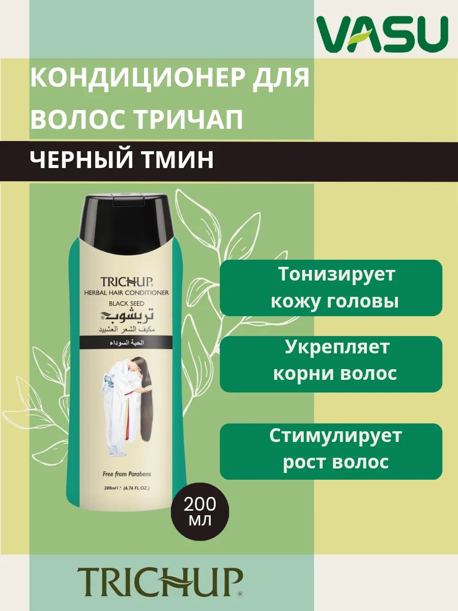 Кондиционер Trichup для волос c содержанием чёрного тминатонизирует кожу головы, укрепляет корни волос, стимулирует их рост. Возвращает волосам блеск, шелковистость и здоровый вид, а также устраняет перхоть.Препятствует воспалительным процессам, регенерирует воспалённые участки кожи головы.Смягчает кожу, увлажняет, тонизирует, предохраняет от шелушения.Придаёт волосам здоровый блеск, защищает от ультрафиолета.Способствует быстрому росту волос.