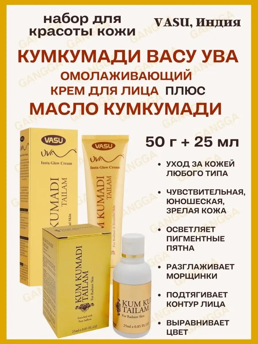 VASU Кумкумади крем, Кумкумади масло, Kumkumadi Vasu, 50г+25мл
