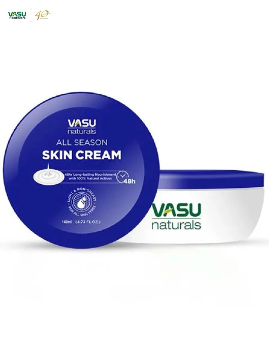 ALL SEASON Skin Cream от Vasu — универсальное средство для ухода за кожей, идеально подходящее для всех типов кожи: нормальной, сухой, жирной, чувствительной и комбинированной. Обогащенный 100% натуральными активными веществами, этот крем обеспечивает интенсивное увлажнение и питание, помогая вашей коже оставаться мягкой, свежей и сияющей в любое время года.