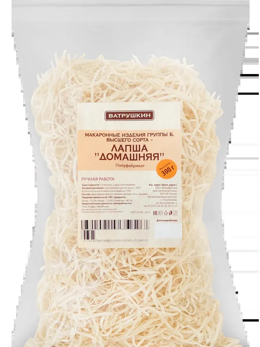 VATRUSHKIN Homemade Noodles with Natural Eggs are made from premium wheat without artificial or harmful additives. This product is a great choice for making delicious chicken broth soups and can be used as an ingredient in warm salads and side dishes.