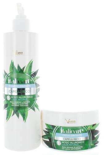 Hair mask application: After washing, apply the mask to damp hair, focusing on the lengths and ends. For a more intense effect, leave on for 2-3 minutes. Leave on and rinse. Avoid contact with eyes. In case of contact with eyes, rinse thoroughly with water. Shampoo application: Distribute the shampoo evenly through damp hair, lather, massage lightly, and rinse thoroughly. Repeat if necessary. Avoid contact with eyes. In case of contact with eyes, rinse thoroughly with water. The hyaluronic acid and aloe vera hair mask helps repair damaged surfaces, prevents breakage, and provides intensive care right down to the ends. The aloe vera and hyaluronic acid hair mask balances hair moisture and hydrates even the driest hair for supple hair with bounce and radiant shine. Aloe vera soothes the scalp, and hyaluronic acid hydrates and prevents breakage. This shampoo is suitable for daily hair care. Unisex. Resealable. Thanks to its beneficial components, it deeply nourishes and hydrates hair. Hyaluronic acid hydrates and prevents breakage. This selection of ingredients is ideal for optimal care and definition of natural waves and curls. Optimal care and cleansing for curly, frizzy, and unruly hair. The aloe vera shampoo and mask with hyaluronic acid is the complete care range for curly, wavy, structured, frizzy, and straightened hair. An Italicare professional care product for men and women, made in Italy. Aloe vera is a medicinal plant with antioxidant and anti-inflammatory properties. A valuable ally for the care and protection of hair and scalp.