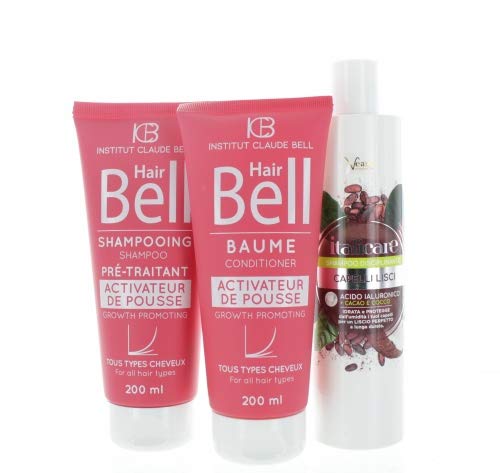 Italicare Smoothing Shampoo with Coconut Oil and Cocoa Butter - This shampoo is specially formulated for dry, brittle, dull, damaged, and unruly hair. An intensive professional treatment made in Italy. Coconut oil and cocoa butter in this shampoo intensely nourish hair without weighing it down. Coconut oil, rich in natural fatty acids, and cocoa butter tame and smooth unruly hair, while hyaluronic acid, with its incredible moisturizing power, hydrates brittle and dry hair from root to tip. This smoothing shampoo with coconut oil and cocoa butter is an intensive professional treatment for brittle, dull, dry, and unruly hair. It tames unruly and brittle hair, hydrates, smooths, and restores its natural shine. The coconut oil shampoo with hyaluronic acid gently cleanses and smooths the hair fiber, providing a long-lasting anti-frizz effect. It also prevents static electricity and protects against harmful environmental influences and humidity. Clinical tests on HairBell prove that hair grows three times faster. In just four months, hair grows faster than its usual annual growth rate. Nourishes and hydrates, leaving hair richer, shinier, and stronger. HairBell shampoo and conditioner are used 1 to 2 times per week. For your other hair care needs, we have combined HairBell shampoo and conditioner with Italicare's Premium Perfect Hair Care for in-between treatments. For all hair types, we offer the optimal combination of HairBell and Italicare products.Measurements in centimeters taken during use with HairBell represent an average increase in hair growth rate of 123 over 28 days of treatment. 95 of participants in the HairBell clinical trial continued to use the product after the study. Nourishes and hydrates, leaving hair richer, shinier, and stronger. HairBell shampoo and conditioner are used 1 to 2 times per week. For your other hair care needs, we have combined HairBell shampoo and conditioner with Italicare's Premium Perfect Hair Care for in-between treatments. For all hair types, we offer the optimal combination of HairBell and Italicare products. Coconut oil, rich in natural fatty acids and cocoa butter, can tame and smooth unruly hair, while hyaluronic acid, with its incredible moisturizing power, hydrates brittle and dry hair from root to tip. The smoothing shampoo with coconut oil and cocoa butter is an intensive professional treatment for brittle, dull, dry, and unruly hair. Italicare Smoothing Shampoo with Coconut Oil and Cocoa Butter is a special shampoo for dry, brittle, dull, damaged, and unruly hair. An intensive professional treatment made in Italy. Coconut oil and cocoa butter shampoo help to intensely nourish hair without weighing it down. Italicare Smoothing Shampoo with Coconut Oil and Cocoa Butter is a special shampoo for dry, brittle, dull, damaged, and unruly hair. Clinical tests on HairBell prove that hair grows three times faster. In just four months, hair grows faster than its usual annual growth rate.Shampoing à l'huile de coco Hyaluron (300 ml) shampoing et après-shampoing HairBell (2 x 200 ml) pour cheveux secs, fragiles, ternes, abîmés et rebelles.DESCRIPTION DU PRODUIT Italicare lissant à l'huile de noix de coco et au beurre de cacao - Le shampooing est un shampooing spécial pour cheveux secs, cassants, ternes, abîmés et rebelles. Un soin professionnel intensif fabriqué en Italie. L'huile de coco et le shampooing au beurre de cacao aident à nourrir intensément les cheveux sans les alourdir. L'huile de coco riche en acides gras naturels et beurre de cacao, peut dompter et lisser les cheveux indisciplinés, l'acide hyaluronique avec son incroyable pouvoir hydratant hydrate les cheveux cassants et secs de la racine aux pointes. Le shampoing lissant à l'huile de coco et au beurre de caco est un soin professionnel intensif pour les cheveux cassants, ternes, secs et rebelles. Les cheveux rebelles et cassants permettent de contrôler le shampooing, l'hydrate, lisse et redonne la brillance naturelle des cheveux. Le shampooing à l'huile de coco à l'acide hyaluronique nettoie en douceur et lisse la fibre capillaire, avec un effet anti-frisottis durable. Il empêche en même temps l'électricité statique et protège contre les influences nocives de l'environnement et l'humidité de l'air. Les tests cliniques sur HairBell prouvent que les cheveux poussent trois fois plus vite. En seulement quatre mois, les cheveux poussent plus rapidement que leur croissance habituelle en un an. Nourrit et hydrate, les cheveux sont plus riches, plus brillants et plus forts. Le shampoing et l'après-shampoing HairBell sont utilisés 1 à 2 fois par semaine. Pour vos autres soins capillaires, nous avons combiné le shampoing et l'après-shampoing HairBell avec le soin parfait de vos cheveux Premium de Italicare pour les soins intermédiaires. Pour tous les types de cheveux, nous vous proposons la combinaison optimale de produits entre HairBell et Italicare.Les mesures en centimètres effectuées lors de l'utilisation avec HairBell représentent une augmentation moyenne de la vitesse de pousse des poils, qui se situe à 123 pendant 28 jours de traitement. 95 des testeurs du test clinique de Hairbell ont continué à utiliser les cheveux après l'étude. Nourrit et hydrate, les cheveux sont plus riches, plus brillants et plus forts. Le shampoing et l'après-shampoing HairBell sont utilisés 1 à 2 fois par semaine. Pour vos autres soins capillaires, nous avons combiné le shampoing et l'après-shampoing HairBell avec le soin parfait de vos cheveux Premium de Italicare pour les soins intermédiaires. Pour tous les types de cheveux, nous vous proposons la combinaison optimale de produits entre HairBell et Italicare. L'huile de coco riche en acides gras naturels et beurre de cacao, peut dompter et lisser les cheveux indisciplinés, l'acide hyaluronique avec son incroyable pouvoir hydratant hydrate les cheveux cassants et secs de la racine aux pointes. Le shampoing lissant à l'huile 