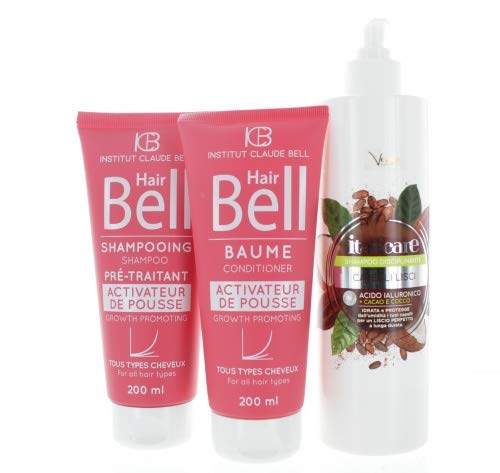 For all hair types, we offer the optimal combination of HairBell and Italicare products. Measurements taken with HairBell show an average increase in hair growth rate of 123 over a 28-day treatment period. HairBell clinical tests prove that hair grows three times faster with HairBell. In just four months, hair can grow faster than it normally grows in a year. Nourished and hydrated, hair is fuller, shinier, and stronger. HairBell shampoo and conditioner are used 1 to 2 times per week. Coconut oil, rich in natural fatty acids, and cocoa butter can tame and smooth unruly hair, while hyaluronic acid, with its incredible moisture-binding properties, provides shine and hydration to brittle and dry hair from root to tip. Intensive professional care for brittle, dull, dry, and unruly hair. Unruly and brittle hair requires shampoo to be controlled, hydrated, and smoothed. Italicare's Smoothing Shampoo with Hyaluronic Acid and Cocoa Butter is a special shampoo for dry, brittle, dull, damaged, and unruly hair. An intensive professional treatment made in Italy. The shampoo with hyaluronic acid, coconut oil, and cocoa butter helps to intensely nourish hair without weighing it down. Italicare's Smoothing Shampoo with Hyaluronic Acid and Cocoa Butter is a special shampoo for dry, brittle, dull, damaged, and unruly hair. HairBell clinical tests prove that hair grows three times faster with HairBell. In just four months, hair can grow faster than it normally grows in a year.Shampoing à l'acide hyaluronique au beurre de cacao (500 ml) shampooing et après-shampoing HairBell (2 x 200 ml), cheveux secs, cassants, ternes, abîmés et rebelles parfaitement soignés et poussentPour tous les types de cheveux, nous vous proposons la combinaison optimale de produits entre HairBell Italicare. Les mesures en centimètres réalisées avec HairBell montrent une augmentation moyenne de la vitesse de croissance des cheveux, qui s'élève à 123 pour une période de traitement de 28 jours. Les tests cliniques HairBell prouvent que les cheveux poussent trois fois plus vite avec Hairbell. En seulement quatre mois, les cheveux peuvent pousser plus vite qu'ils ne poussent normalement en un an. Nourris et hydratés, les cheveux sont plus volumineux, plus brillants et plus forts. Le shampooing et l'après-shampoing HairBell s'utilisent 1 à 2 fois par semaine. L'huile de noix de coco riche en acides gras naturels et en beurre de cacao peut dompter et lisser les cheveux rebelles, l'acide hyaluronique avec son incroyable dépôt d'hydratation apporte une brillance et une hydratation aux cheveux cassants et secs de la racine aux pointes. Le soin professionnel intensif pour les cheveux cassants, ternes, secs et rebelles. Les cheveux rebelles et cassants permettent de contrôler le shampooing, de l'hydrater et de les lisser. Le shampooing lissant à l'acide hyaluronique et au beurre de cacao Italicare est un shampooing spécial pour cheveux secs, cassants, ternes, abîmés et rebelles. Un soin professionnel intensif fabriqué en Italie. Le shampooing à l'acide hyaluronique à l'huile de coco et au beurre de cacao aide à nourrir intensément les cheveux sans les alourdir. Le shampooing lissant à l'acide hyaluronique et au beurre de cacao Italicare est un shampooing spécial pour les cheveux secs, cassants, ternes, abîmés et rebelles. Les tests cliniques HairBell prouvent que les cheveux poussent trois fois plus vite avec Hairbell. En seulement quatre mois, les cheveux peuvent pousser plus vite qu'ils ne poussent normalement en un an.