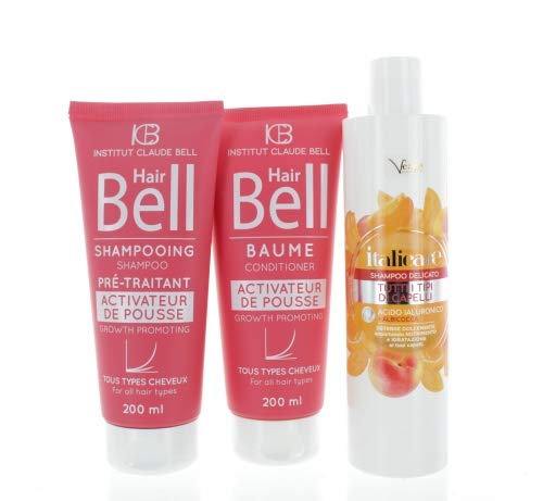 Hyaluronic acid shampoo with apricot extract is your new go-to hair care product. This premium Italicare product is perfectly suited for all hair types and for daily use. Apricot is a typical summer fruit with numerous beneficial properties for the health of the body, skin, and hair. Apricot extract is a commonly used ingredient in cosmetic products. This range of hyaluronic acid and apricot extract is designed for daily use and is therefore very gentle on the scalp. Italicare's hyaluronic acid shampoo with apricot extract moisturizes and adds lightness and elasticity to the hair. This shampoo gently cleanses the hair from root to tip. It is suitable for all hair types and can be resealed. Hyaluronic acid shampoo is also very economical and therefore cost-effective to use. Delicato professional series for daily hair care, made in Italy. Salon-quality results at home, as if you just left the salon. Clinical tests on HairBell prove that hair grows three times faster. In just four months, hair grows faster than its usual annual growth rate. Nourishes and hydrates, leaving hair richer, shinier, and stronger. Use HairBell shampoo and conditioner once or twice a week. For your other hair care needs, we've combined HairBell shampoo and conditioner with Italicare's Premium Perfect Care for in-between treatments. For all hair types, we offer the optimal combination of HairBell and Italicare products.Measurements in centimeters taken during use with HairBell represent an average increase in hair growth rate of 123 over 28 days of treatment. 95 of participants in the HairBell clinical trial continued to use the hair extensions after the study. For your other hair care needs, we have combined HairBell shampoo and conditioner with Italicare's Premium hair care for in-between treatments. For all hair types, we offer the optimal combination of HairBell and Italicare products. This range of hyaluronic acid and apricot extract is designed for daily use and is therefore very gentle on the scalp. Italicare's hyaluronic acid shampoo with apricot extract moisturizes and adds lightness and elasticity to the hair. This shampoo gently cleanses the hair from root to tip. The hyaluronic acid shampoo with apricot extract is your new go-to hair care product. This premium Italicare product is perfectly suited for all hair types and daily use. Apricot is a typical summer fruit with numerous beneficial properties for the health of the body, skin, and hair. Apricot extract is a commonly used ingredient in cosmetic products. Hyaluronic acid shampoo with apricot extract is your new hair care essential. This premium Italicare product is perfectly suited for all hair types and daily use. Clinical tests on HairBell prove that hair grows three times faster. In just four months, hair grows faster than its usual annual growth rate.Shampoing hyaluron à l'extrait d'abricot (300 ml) shampoing et après-shampoing HairBell (2 x 200 ml) pour accélérer la croissance des cheveuxDESCRIPTION DU PRODUIT Le shampooing à l'acide hyaluronique à l'extrait d'abricot est votre nouveau soin capillaire. Ce produit premium Italicare est parfaitement adapté à tous les types de cheveux ainsi qu'à une utilisation quotidienne. L'abricot est un fruit d'été typique avec de nombreuses propriétés bénéfiques pour la santé du corps, de la peau et des cheveux. L'extrait d'abricot est un ingrédient couramment utilisé pour les produits cosmétiques. Cette gamme d'acide hyaluronique et d'extrait d'abricot est destinée à un usage quotidien et donc très douce pour le cuir chevelu. Le shampooing à l'acide hyaluronique aux extraits d'abricot d'Italicare hydrate et apporte légèreté et élasticité aux cheveux. Ce shampooing nettoie les cheveux en douceur de la racine aux pointes. Il convient à tous les types de cheveux et peut être refermé. Le shampooing à l'acide hyaluronique est également très économique et donc économique à utiliser. Série professionnelle Delicato pour le soin quotidien des cheveux fabriqué en Italie. Résultats de salon à la maison, comme si vous veniez de venir chez un coiffeur. Les tests cliniques sur HairBell prouvent que les cheveux poussent trois fois plus vite. En seulement quatre mois, les cheveux poussent plus rapidement que leur croissance habituelle en un an. Nourrit et hydrate, les cheveux sont plus riches, plus brillants et plus forts. Le shampoing et l'après-shampoing HairBell sont utilisés 1 à 2 fois par semaine. Pour vos autres soins capillaires, nous avons combiné le shampoing et l'après-shampoing HairBell avec le soin parfait de vos cheveux Premium de Italicare pour les soins intermédiaires. Pour tous les types de cheveux, nous vous proposons la combinaison optimale de produits entre HairBell et Italicare.Les mesures en centimètres effectuées lors de l'utilisation avec HairBell représentent une augmentation moyenne de la vitesse de pousse des poils, qui se situe à 123 pendant 28 jours de traitement. 95 des testeurs du test clinique de Hairbell ont continué à utiliser les cheveux après l'étude. Pour vos autres soins capillaires, nous avons combiné le shampoing et l'après-shampoing HairBell avec le soin parfait de vos cheveux Premium de Italicare pour les soins intermédiaires. Pour tous les types de cheveux, nous vous proposons la combinaison optimale de produits entre HairBell et Italicare. Cette gamme d'acide hyaluronique et d'extrait d'abricot est destinée à un usage quotidien et donc très douce pour le cuir chevelu. Le shampooing à l'acide hyaluronique aux extraits d'abricot d'Italicare hydrate et apporte légèreté et élasticité aux cheveux. Ce shampooing nettoie les cheveux en douceur de la racine aux pointes. Le shampooing à l'acide hyaluronique à l'extrait d'abricot est votre nouveau soin capillaire. Ce produit premium Italicare est parfaitement adapté à tous les types de cheveux ainsi qu'à une utilisation quotidienne. L'abricot est un fruit d'été typique 