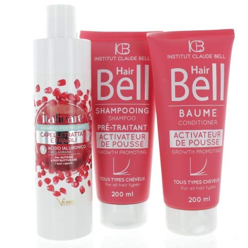 Veana Hyaluronic shampoo with pomegranate 300ml + HairBell shampoo and conditioner 2 x 200ml. For colored fragile damaged dry and normal hair growth up to 3 times faster.