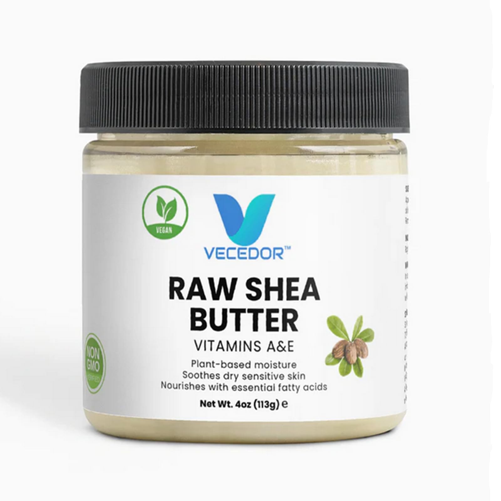 VECEDOR African Raw Shea Butter, Organic, Moisturizing, Unrefined, Natural, Vegan, Eczema Relief, Anti-Aging Skin Care With Vitamins A & E, For Face, Body & Hair, Unscented 4oz