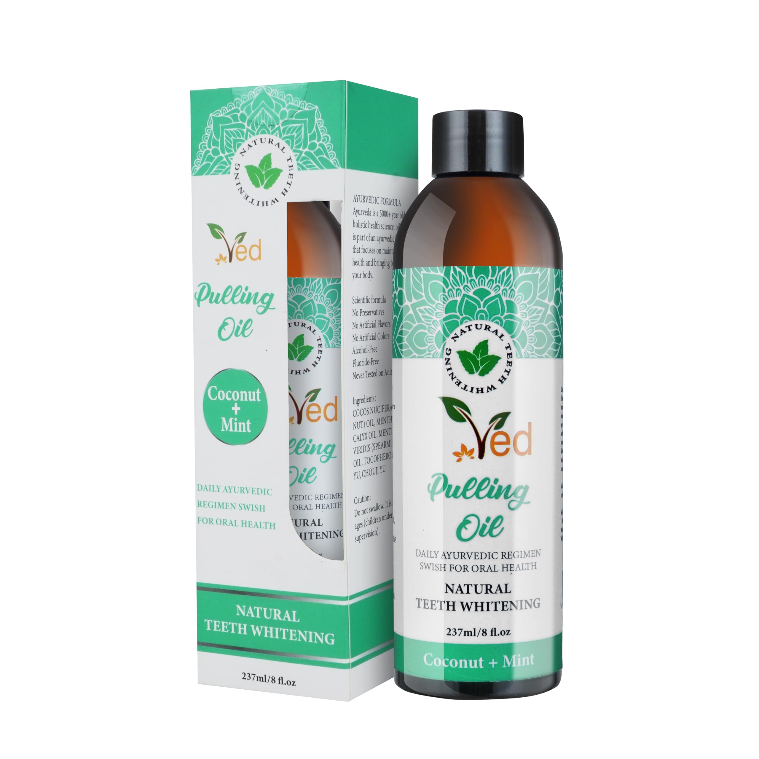 DIRECTIONS FOR USE: Place 1 tablespoon of Advanced Formula Oil Pulling in your mouth and gently swish, pushing the oil between your teeth and around your mouth for 2 to 3 minutes. For best results, you can increase the time up to 15 minutes depending on your comfort level. Do not swallow the oil. ALL-NEW OIL PULL EXPERIENCE: Made using the Ayurvedic principles of the original Ved Oil Pulling, this new advanced formula has been enriched with pure essential oils. Enjoy a very pleasant and flavorful oil pull experience. Long-Term Benefits of Oil Pulling: Unlike the temporary effects of traditional alcohol-based mouthwashes, coconut oil provides longer-term benefits to your oral health. Oil pulling can increase saliva production, help remove plaque and tartar, and prevent tooth decay. Ideal for daily use – The oil pulling formula comes with a tongue scraper. It is recommended to oil pull first thing in the morning on an empty stomach for up to 10 minutes daily for ultimate benefits. This specific formula is a holistic way to care for your oral hygiene. Natural oil pulling – Coconut oil pulling is an Ayurvedic blend of fractionated coconut oil. This authentic coconut oil blend is a natural mouthwash for teeth whitening that helps freshen your breath and promotes healthy gums.CONSEILS D'UTILISATION : Placez 1 cuillère à soupe d'huile de tirage Advanced Formula dans votre bouche et frottez doucement en poussant l'huile entre vos dents et autour de votre bouche pendant 2 à 3 minutes. Pour de meilleurs résultats, vous pouvez augmenter la durée jusqu'à 15 minutes en fonction de votre niveau de confort. N'avalez pas l'huile. TOUTE NOUVELLE EXPÉRIENCE D'EXTRACTION D'HUILE : Fabriquée en utilisant les principes ayurvédiques de l'huile d'extraction originale Ved, cette nouvelle formule avancée a été enrichie en huiles essentielles pures. Profitez d'une expérience d'extraction d'huile très agréable et savoureuse. Avantages à long terme de l'extraction d'huile : Contrairement aux effets temporaires des bains de bouche traditionnels à base d'alcool, l'huile de noix de coco apporte des avantages à plus long terme à votre santé bucco-dentaire. Le bain de bouche à huile peut augmenter la sécrétion de salive, aider à éliminer la plaque dentaire et le tartre et prévenir la carie dentaire. Idéal pour un usage quotidien – La formule d'extraction d'huile est livrée avec un grattoir à langue. Il est recommandé de tirer de l'huile en début de journée à jeun jusqu'à 10 minutes par jour pour des bienfaits ultimes. Cette formule spécifique est une manière holistique de prendre soin de votre hygiène bucco-dentaire. Extraction d'huile naturelle – L'huile de noix de coco tirant est un mélange ayurvédique d'huile de noix de coco fractionnée. Ce mélange authentique d'huile de noix de coco est un rince-bouche naturel pour blanchir les dents qui aide à rafraîchir votre haleine et favorise la santé des gencives.Ved Huile de noix de coco, rince-bouche avec grattoir à langue, huile de noix de coco naturelle pour blanchir les dents, haleine fraîche, dents et gencives plus saines, sans alcool, 237 ml