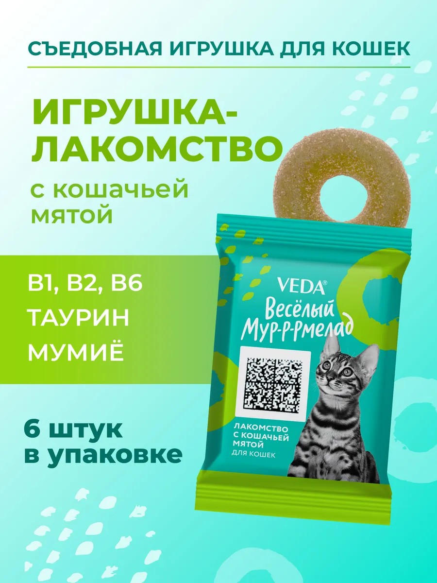 | Комплектация | Лакомства для кошек мармелад в форме колечек с кошачьей мятой 6 штук по 6 гр |