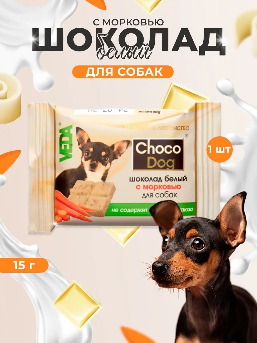 КомплектацияШоколад для собак CHOCO DOG белый с морковью 15 гр - 1 шт