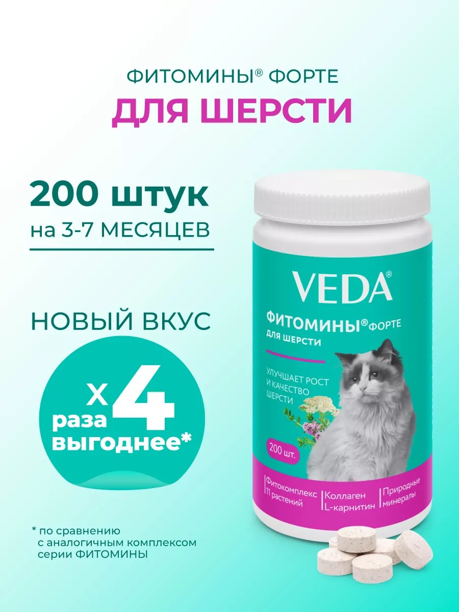 The "Fitomins Forte" line from the Russian manufacturer VEDA for cats is available at your veterinary pharmacy—premium products for the health and beauty of your pets.