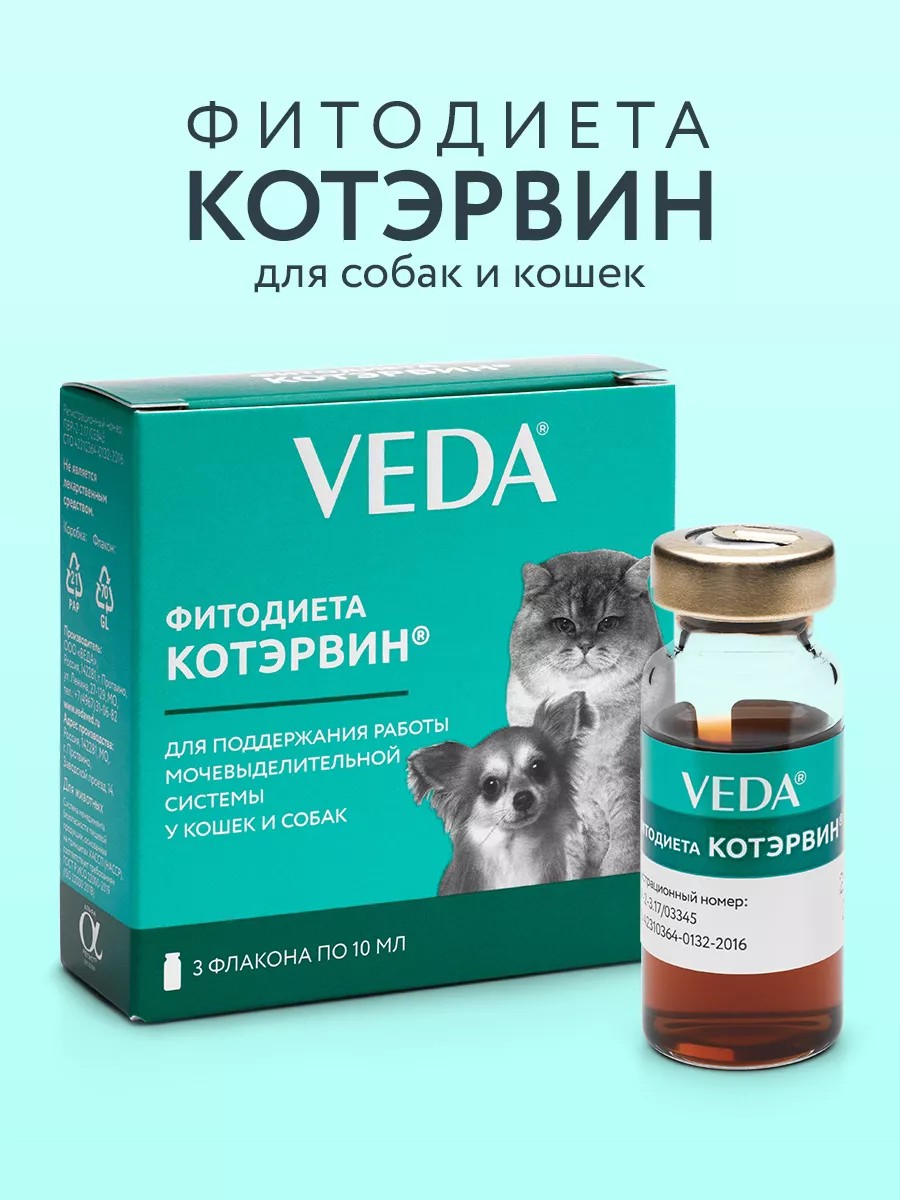 Средство профилактики МКБ кошек, собак Котэрвин 1уп по 3 фл
