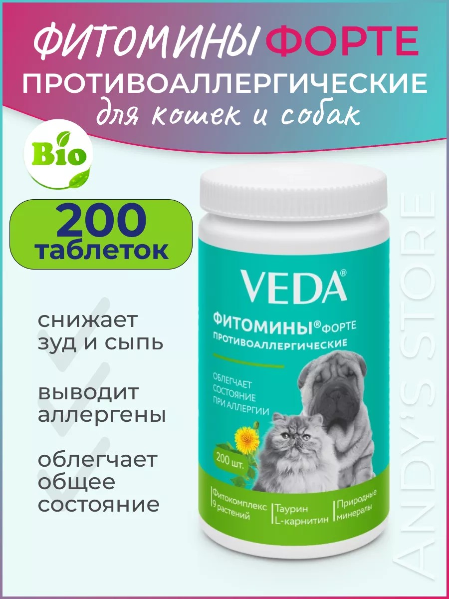 Фитомины ФОРТЕ противоаллергические для собак и кошек 1шт