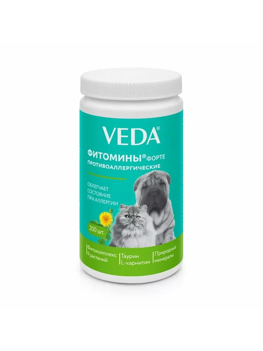 | Полное наименование товара | Кормовая добавка VEDA Фитомины Форте противоаллергические собакам и кошкам, 200 таб. |