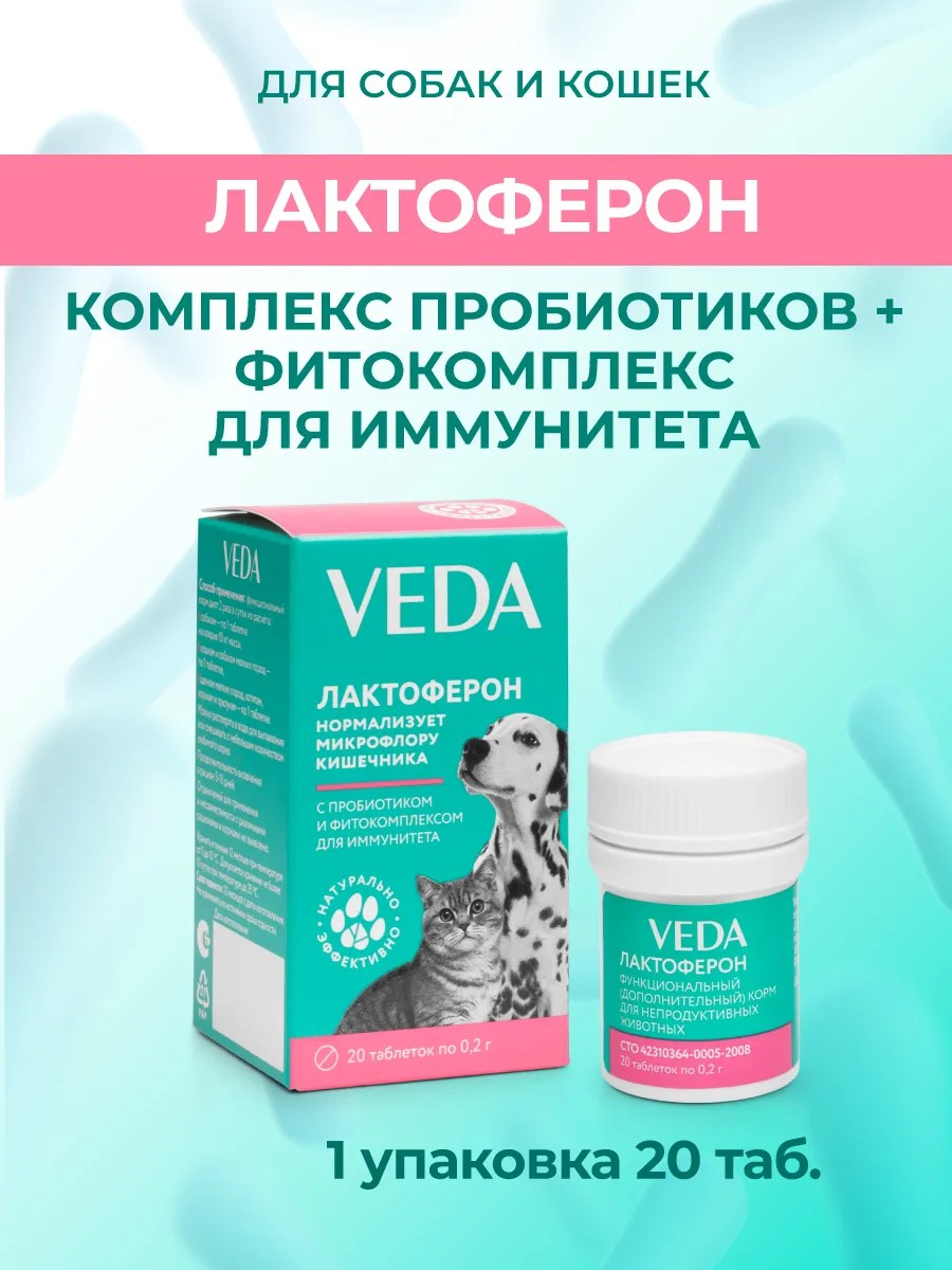 Лактоферон от Веда рекомендуется иметь в ветаптеке для крупных, мелких и средних пород собак и котов, чтобы помочь своему питомцу при проблемах и расстройствах в работе желудочно-кишечного тракта (ЖКТ), в том числе вследствие приёма антибиотиков, лекарств, или стресса, при дисбиозе, нестабильности стула (особенно у щенков и котят). Допустимо применение беременным и кормящим самкам, кастрированным и стерилизованным.