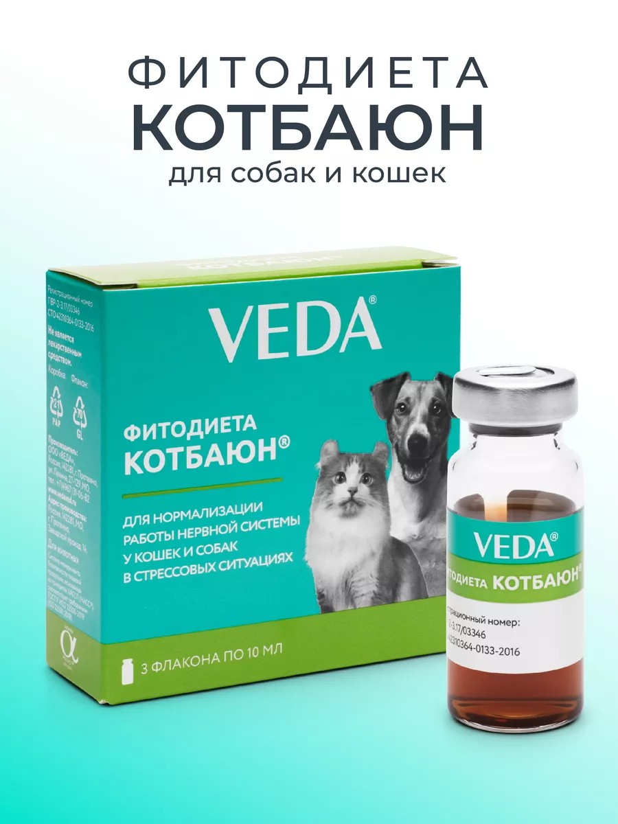 ФИТОДИЕТА КОТБАЮН (FITODIETA CATBAIYUN) – кормовая добавка для нормализации работы нервной системы у кошек и собак в стрессовых ситуациях. КОТ БАЮН содержит в составе биологически активные вещества из растительного сырья, обладающие успокаивающими и ослабляющими чувство страха свойствами. Успокоительное снижает беспокойство и агрессивность, действует мягко и безопасно для животного, не вызывает сонливости.