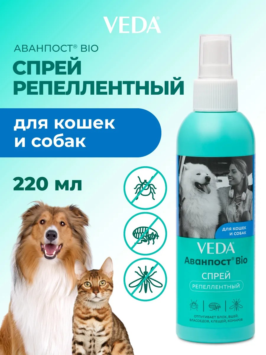 Спрей от блох и клещей для кошек,собак,котят,щенков и других домашних питомцев Аванпост Bio–эффективное репеллентное средство от нападения вшей, блох, власоедов, клещей,а также от летающих насекомых (мошек,комаров,москитов). Возможно применение для обработки мест обитания животных (лежаки,коврики,подстилки) от паразитов.