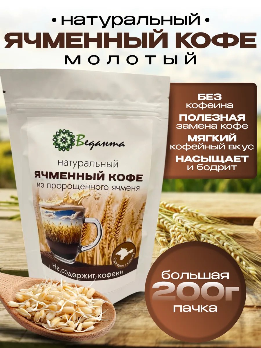 «Ячменный кофе» - это уникальный продукт здорового питания на 100% состоящий из пророщенного зерна ячменя. В его составе витамины группы В,РР, Е, Н, сера, калий, натрий, кальций, калий, железо, йод, цинк, медь, селен, молибден, кремний, марганец, хром, фтор и масса других незаменимых для организма элементов. Темная обжарка рекомендована любителям кофейного вкуса и больше подходит для приготовления напитка с различными видами молока.