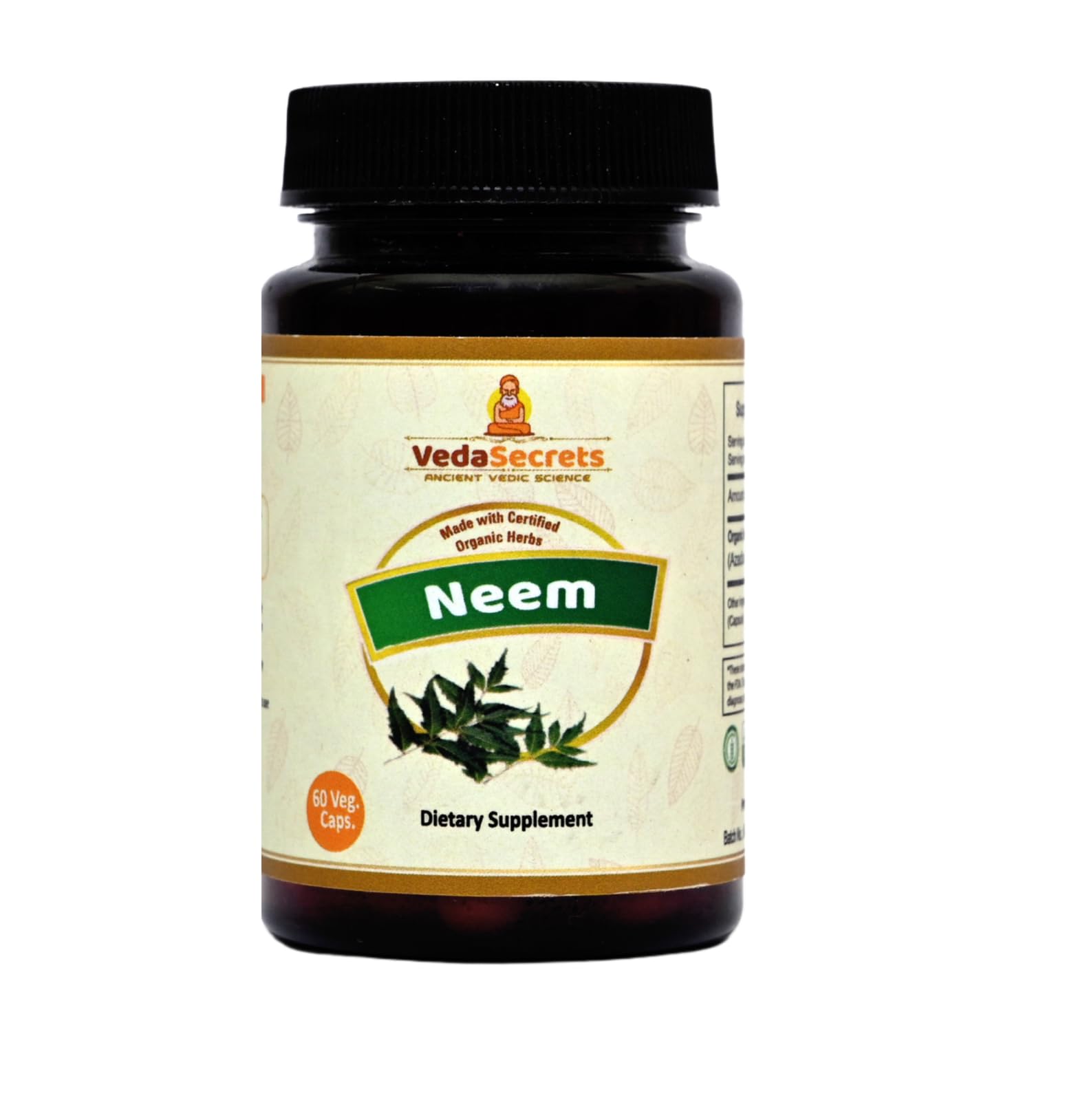 Purify and Nourish with VedaSecrets Neem Organic Supplement Harness the Natural Benefits of Azadirachta Indica Discover the ancient wisdom of Neem, a revered herb in Ayurveda, now available in a convenient organic supplement form. Our Neem Organic Supplement is expertly crafted with the potent essence of Azadirachta Indica, offering a natural way to support your overall well-being. Benefits: - Supports immune function and overall health - May help detoxify and purify the body - Rich in antioxidants and natural compounds - Encourages healthy skin, hair, and nails - Complements a balanced lifestyle with traditional Ayurvedic wisdom Product Features: - Made with organic Neem extract (Azadirachta Indica) - Vegan-friendly, cruelty-free, and suitable for plant-based diets - Convenient capsule form for easy use - Manufactured with care to ensure purity and potency Why Choose VedaSecrets Neem Organic Supplement? - Unlock the natural benefits of Neem for overall wellness - Support your health with a convenient and effective organic supplement - Enjoy the wisdom of traditional Ayurveda in a modern, easy-to-use form