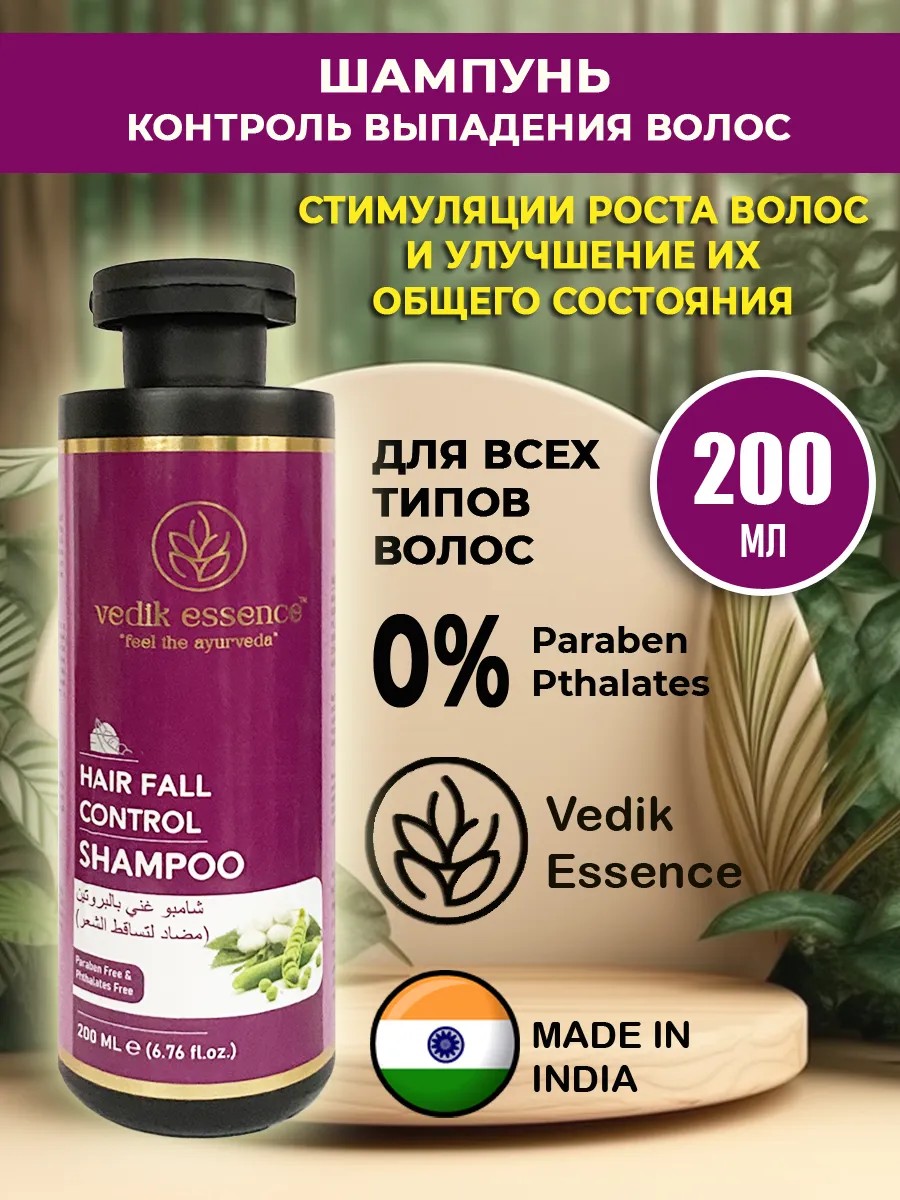 Индийский шампунь Vedic Eccense контроль выпадения волос 200 мл.