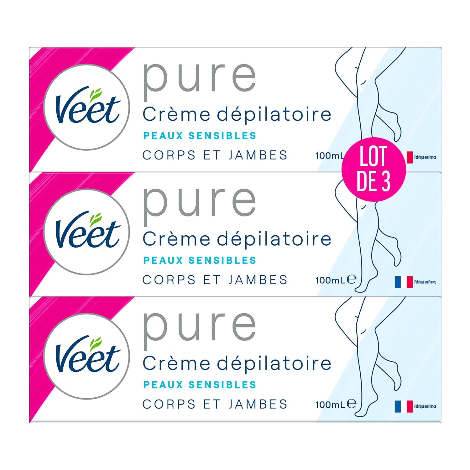 VEET QUALITY - For fast and painless hair removal, try Veet Hair Removal Creams. They are specially formulated to weaken hairs so they are easier to remove from your skin, and contain moisturizing agents for beautifully smooth skin. They work close to the root, even on very short hairs, and ensure soft regrowth. Your skin stays smooth twice as long as after shaving! LONG-LASTING RESULTS - Veet Minima Pure Hair Removal Cream works close to the root, even on short hairs, for long-lasting smoothness and a fresher scent. EASY TO USE - Using the curved part of the spatula, spread the cream evenly to cover all hairs. Leave the cream on for 3 to 6 minutes. Remove the cream with the spatula in the opposite direction of hair growth. Rinse your skin thoroughly with water to completely remove the cream, then dry. VEET Minima Pure Hair Removal Cream - This hair removal cream for dry skin can be used on legs, arms, underarms, and the bikini area. It is formulated with 35 fewer chemical ingredients for soft, silky, and freshly scented skin. THIS PACK CONTAINS - 3 kits, each containing one 100ml tube of hair removal cream and one spatula.QUALITE VEET - Pour une épilation rapide et indolore, essayez les Crèmes Dépilatoires Veet. Elles sont spécialement formulées pour affaiblir les poils afin qu'ils se retirent plus facilement de votre peau, et contiennent des agents hydratants pour une peau toujours plus belle. Elles agissent au plus près de la racine, même sur les poils très courts, et vous assurent une repousse tout en douceur. Ainsi votre peau reste douce deux fois plus longtemps qu'après un rasage !. RESULTATS LONGUE DUREE - La crème dépilatoire Veet Minima Pure agit au plus près de la racine, même sur les poils courts pour une douceur longue durée et un parfum plus frais. UTILISATION FACILE - A l'aide de la partie incurvée de la spatule, étalez la crème uniformément de façon à recouvrir tous les poils. Posez la crème 3 à 6 minutes. Retirez la crème à l'aide de la spatule dans le sens inverse de la pousse du poil. Rincez votre peau abondamment avec de l'eau pour enlever complètement la crème puis séchez-la. CREME DEPILATOIRE VEET Minima Pure - La crème dépilatoire pour peaux sèches s'utilise sur les jambes, bras, aisselles et le maillot. Elle est formulée avec -35 d'ingrédients chimiques pour une peau douce, soyeuse et fraîchement parfumée. CE LOT CONTIENT - 3 kits de 1 tube de 100ml de crème dépilatoire et 1 spatule.Veet Crème Dépilatoire Minima - Douceur Longue Durée Après Epilation- Peaux Sensibles - Tube 100ml (Lot de 3) 100 ml (Lot de 3)