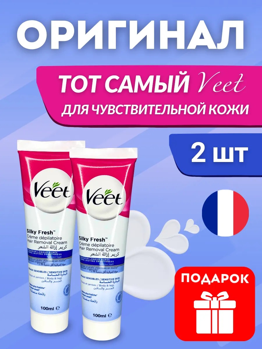 VEET Крем для депиляции Veet для чувствительной кожи 100мл, 2 уп.