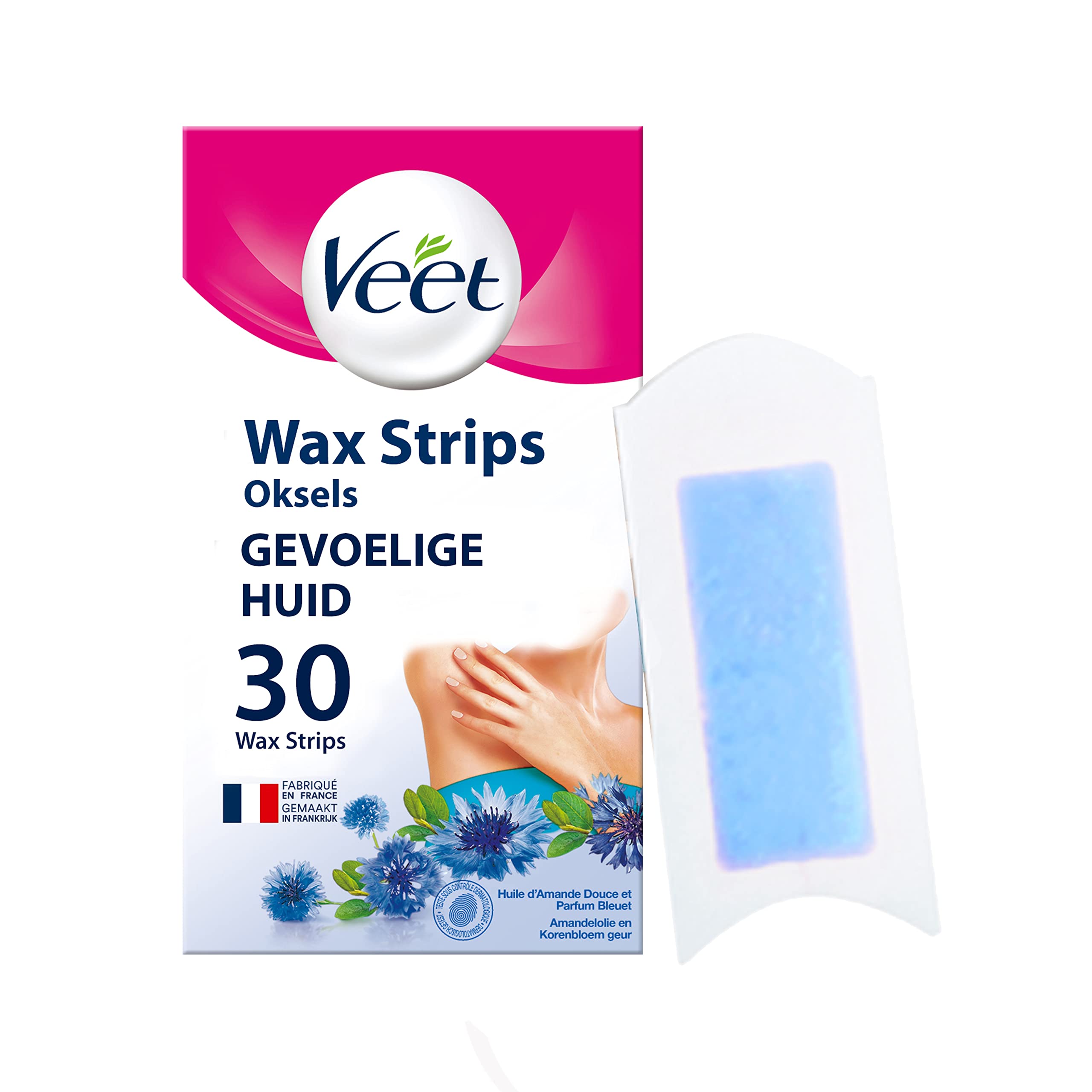 Easy to use, the Vêt underarm cold wax strips for sensitive skin have been specially designed for hair removal in your most sensitive areas. Greek to their formula they are also effective on very short hairs . with their gel texture, the strips coat the hair without adhering to the skin. Enriched with sweet almond oil, known for its beneficial properties for sensitive skin, the underarm wax strips will offer you up to 28 days of softness and will leave your skin hydrated and exfoliated. 1.5mm Clinical study on 30 women - 2016. INGREDIENTS "Hydrogenated Styrene Methyl Styrene Indene Copolymer, Paraffinum Liquidum, Silica, Polyethylene, Pentaerythrityl Tetra-di-t-butyl Hydroxyhydrocinnamate, Parfum, Tocopheryl Acetate, Prunus Amygdalus Dulcis Oil, Linalool, Hexyl Cinnamal, Benzyl Salicylate, Alpha-Isomethyl Ionone, CI 77891, CI 77007." DIRECTIONS FOR USE 1. Remove the wax strips from their packaging. 2. Apply the strip in the direction of hair growth. 3. Wait a few seconds. 4. Remove the strip sharply against the direction of hair growth. SAFETY WARNING Use with caution. Do not apply to irritated or injured skin. Test on a small area of skin before use. If irritation or allergic reaction occurs, discontinue use and consult a physician. Keep out of reach of children. DISCLAIMER Non-contractual photography. The above indications are given for information purposes. They are not necessarily exhaustive and cannot replace the information appearing on the product packaging which alone is authentic, and to which you are invited to refer, particularly in the event of food intolerance. MADE IN FRANCE: Veet wax strips are made in France in our Chartres factory. LONG-LASTING SOFTNESS: Easy gel wax strips are enriched with sweet almond oil and a cornflower scent. EFFECTIVE ON SHORT HAIR: Thanks to its Easy-Gelwax TM gel texture, the wax coats even the shortest hairs for impeccable results. EASY TO USE: Ready-to-use strips with no need to rub, the strips separate easily. Simply apply and pull easily thanks to the tab. SPECIAL UNDERARMS: 30 cold wax strips designed for underarm hair removal and 4 perfect finish wipes. Dermatologically tested. Faciles à utiliser, les bandes de cire froide aisselles Vêt peaux sensibles ont été spécialement conçues pour épilation de vos zones les plus sensibles. Grec à leur formule elles sont aussi efficaces sur les poils très courts . avec leur texture gel, les bandes enrobent les poils sans adhérer à la peau. Enrichies en huile amande douce, reconnue pour ses propriétés bénéfiques pour les peaux sensibles, les bandes de cire aisselles vous offriront jusqu'à 28 jours de douceur et laisseront votre peau hydratée et exfoliée. 1.5mm Etude clinique sur 30 femmes - 2016 . INGRÉDIENTS "Hydrogenated Styrene Methyl Styrene Indene Copolymer, Paraffinum Liquidum, Silica, Polyethylene, Pentaerythrityl Tetra-di-t-butyl Hydroxyhydrocinnamate, Parfum, Tocopheryl Acetate, Prunus Amygdalus Dulcis Oil, Linalool, Hexyl Cinnamal, Benzyl Salicylate, Alpha-Isomethyl Ionone, CI 77891, CI 77007." MODE D'EMPLOI 1. Retirez les bandes de cire de leur emballage. 2. Appliquez la bande dans le sens de la pousse des poils. 3. Patientez quelques secondes. 4. Retirez la bande d'un coup sec dans le sens inverse de la pousse des poils. AVERTISSEMENT DE SÛRETÉ Utiliser avec précaution. Ne pas appliquer sur la peau irritée ou blessée. Faire un test sur une petite zone de peau avant utilisation. En cas d'irritation ou de réaction allergique, cesser l'utilisation et consulter un médecin. Garder hors de portée des enfants. CLAUSE DE NON-GARANTIE Photographie non contractuelle. Les indications ci-dessus sont données à titre d'information. Elles ne sont pas forcément exhaustives et ne sauraient se substituer aux informations figurant sur l'emballage du produit qui font seules foi, et auxquelles vous êtes invités à vous reporter, notamment en cas d'intolérance alimentaire. FABRIQUEES EN FRANCE : Les bandes de cire Veet sont fabriquées en France dans notre usine de Chartres. DOUCEUR LONGUE DUREE : Les bandes de cire easy gel sont enrichies à l'huile d'amande douce et au parfum bleuets. EFFICACE SUR POILS COURTS : Grâce à sa texture gel Easy-Gelwax TM, la cire enrobe même les poils les plus courts pour un résultat impeccable. FACILE A UTILISER : bandes prêtes à l'emploi sans besoin de frotter, les bandes se séparent facilement. Il suffit d'appliquer et de tirer facilement grâce à la languette. SPECIAL AISSELLES : 30 Bandes de cire froide conçues pour l'épilation des aisselles et 4 lingettes finition parfaite. Testées sous contrôle dermatologique.
