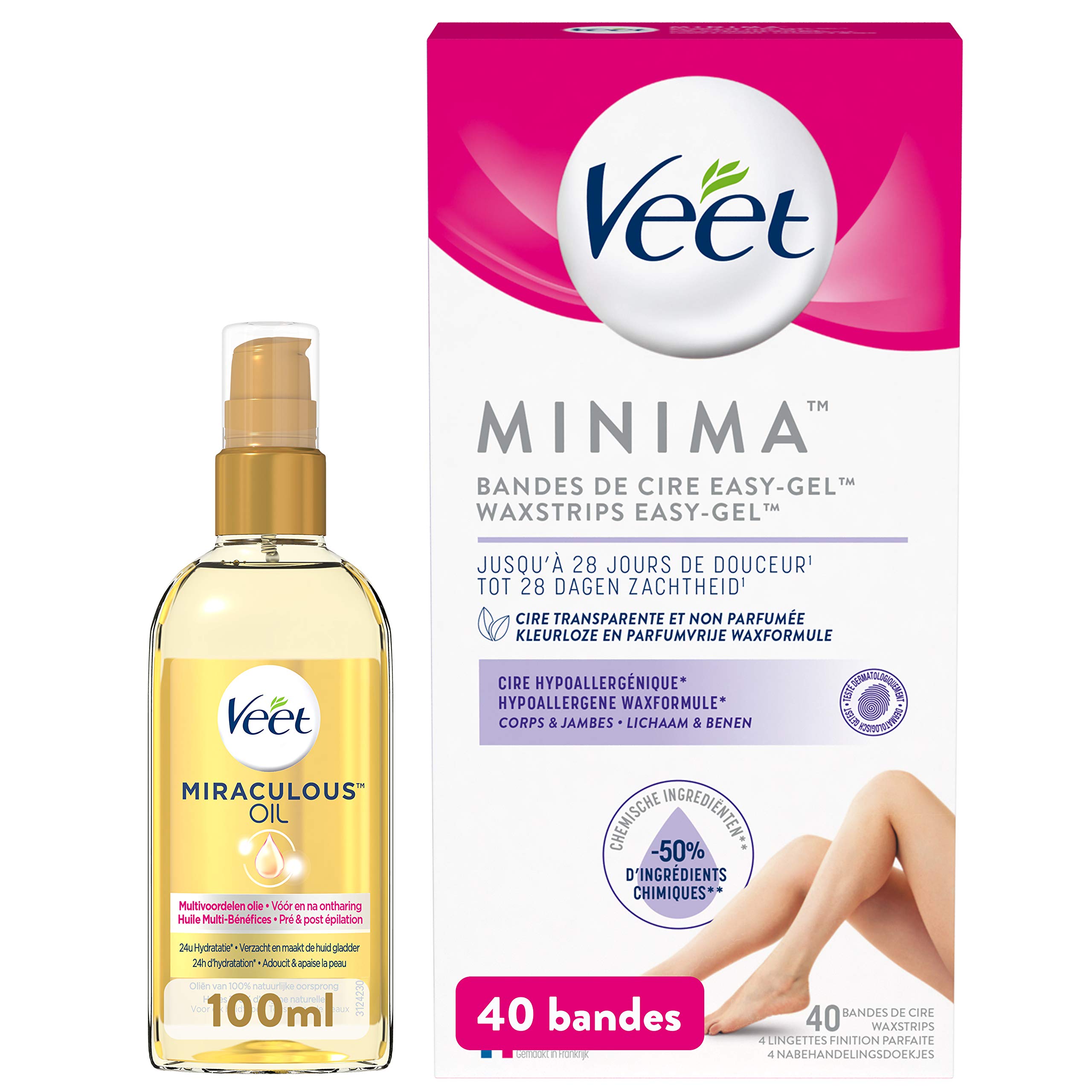 Veet Huile Miraculeuse + Bandes de Cire Froide Minima Epilation Corps & Jambes x40