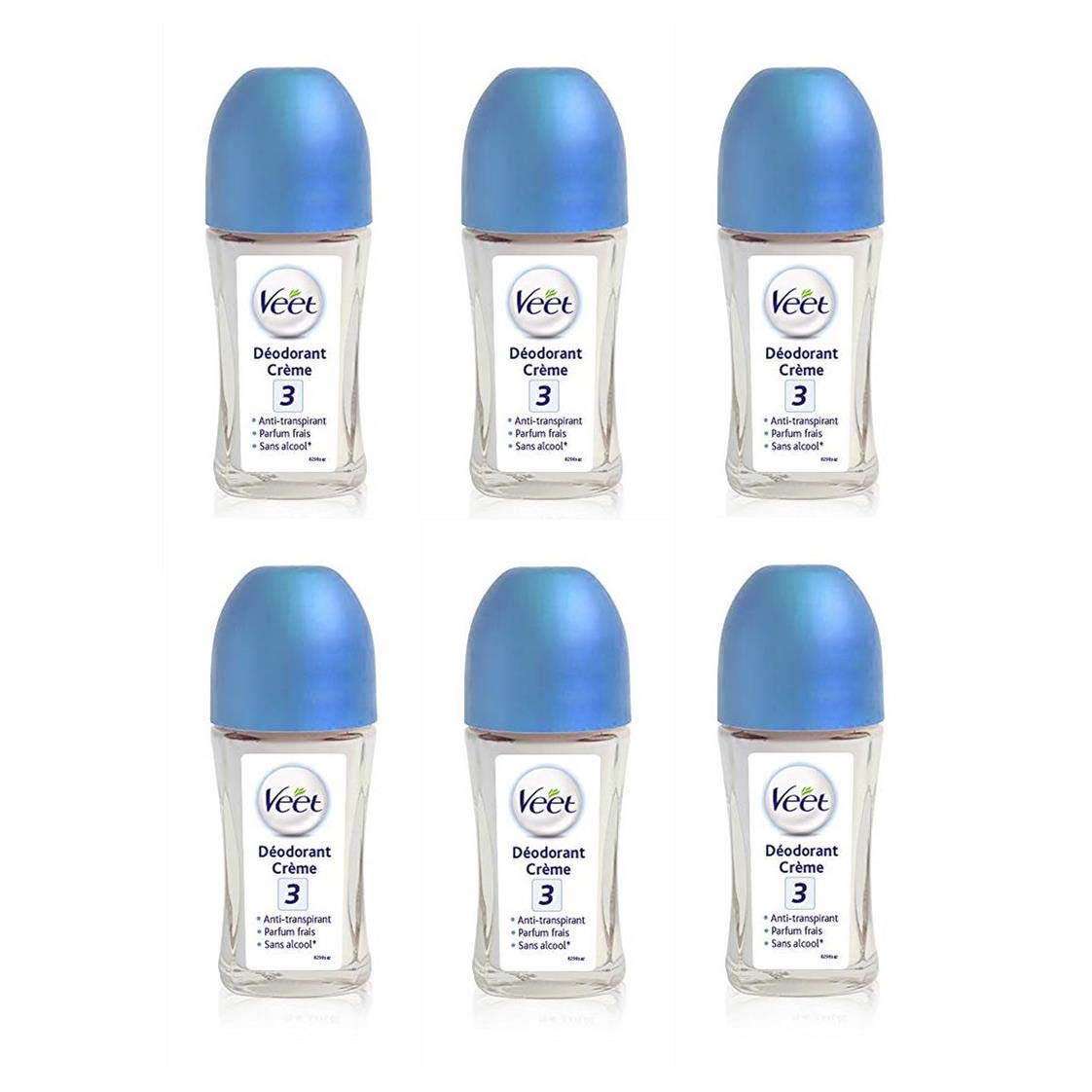 VEET Pack of 6 Anti-Perspiration Roll-On Cream Deodorants - 75ml