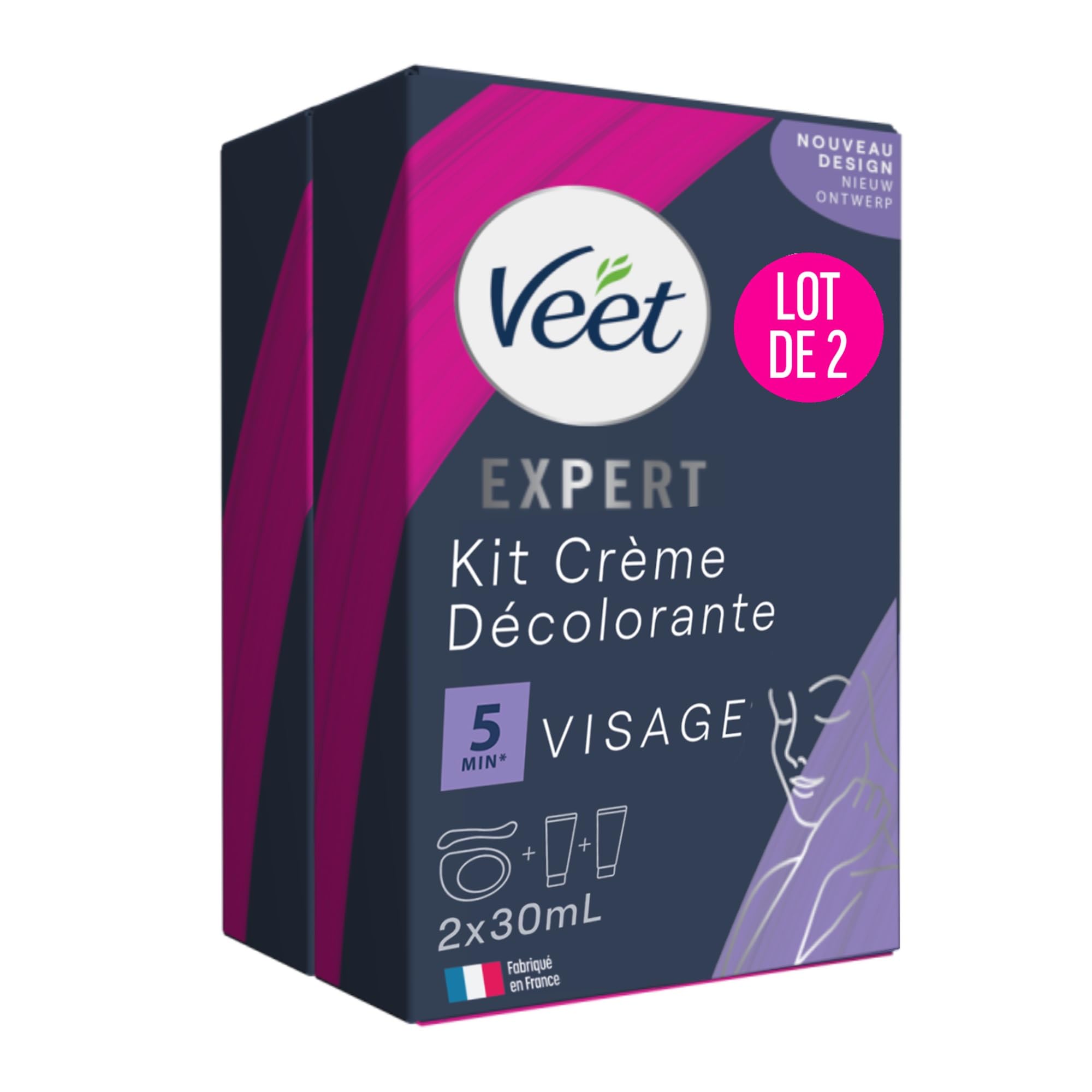 Veet Lightening Cream is an easy, effective, and comfortable way to conceal all the hair you don't want to remove. Easy: a specially designed cup and spatula for easy mixing, application, and removal. Effective: hair begins to lighten after five minutes. Comfortable: the formula combines a pleasant scent and texture with softening oils. DIRECTIONS FOR USE 1. Perform a patch test 48 hours before use. 2. Wash and dry the area to be treated. 3. Mix the lightening cream and activating cream in the cup using the spatula. 4. Apply the mixture to the area to be treated with the spatula. 5. Leave on for 5 to 10 minutes, depending on the initial hair growth and color. 6. Remove the product with the spatula. 7. Rinse thoroughly with cold water. 8. Dry the area and moisturize. SAFETY WARNING Avoid contact with eyes or broken skin. EASY - A spatula and a cup for easy mixing, application and removal. EFFECTIVE - Hairs begin to bleach after 5 minutes. USE - Specially designed for the face, suitable for use on the upper lip. DERMATOLOGICALLY TESTED - Veet Bleaching Cream is a method to conceal all hairs by bleaching them. Its formula is dermatologically tested. THIS PACK CONTAINS - 2 Special Face Bleaching Creams. La crème décolorante Veet est une méthode facile, efficace et agréable pour dissimuler tous les poils que vous ne souhaitez pas épiler. Facile : une coupelle ainsi qu'une spatule spécialement conçues pour faciliter le mélange, l'application et le retrait. Efficace : les poils commencent à se décolorer au bout de cinq minutes. Agréable : la formule associe un parfum et une texture agréables à des huiles adoucissantes MODE D'EMPLOI 1. Effectuez un test épicutané 48 heures avant l'utilisation. 2. Lavez et séchez la zone à traiter. 3. Mélangez la crème décolorante et la crème activante dans la coupelle à l'aide de la spatule. 4. Appliquez le mélange sur la zone à traiter à l'aide de la spatule. 5. Laissez poser pendant 5 à 10 minutes, en fonction de la pilosité et de la couleur initiales des poils. 6. Retirez le produit à l'aide de la spatule. 7. Rincez abondamment à l'eau froide. 8. Séchez la zone et hydratez-la. AVERTISSEMENT DE SÛRETÉ Éviter le contact avec les yeux ou la peau blessée. FACILE - Une spatule et une coupelle pour faciliter le mélange, l'application et le retrait. EFFICACE - les poils commencent à se décolorer au bout de 5 minutes. UTLISATION - Spécialement conçu pour le visage, convient pour une utilisation sur la lèvre supérieure. TESTE DERMATOLOGIQUEMENT - La crème décolorante Veet est une méthode pour dissimuler tous les poils en les décolorant. Sa formule est testée dermatologiquement. CE LOT CONTIENT - 2 Crème Décolorante Spéciale Visage.