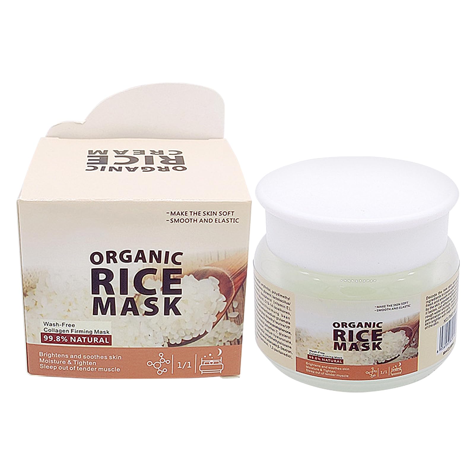 Our Rice Face Cover deeply hydrates the skin and brightens the complexion. Its formula adheres closely to the skin, allowing for overnight use. With a wide range of applications, it's the perfect addition to any skincare routine. Welcome hydrated, radiant skin with Rice Face Cover. Specifications: Product Name: Rice Sleep Gel Suitable for Skin Type: Universal Shelf Life: 3 years Product Dimensions: Approximately 3.8 x 3.8 x 10.5 cm Contents: 1 Box of Rice Sleep GelSkin revitalization: Our Rice Sleep Cream provides gentle care for dry, oily, sensitive, and combination skin. This leave-in face mask deeply hydrates and nourishes your skin overnight, leaving it soft, smooth, and rejuvenated in the morning. Overnight hydration: No need to rinse, this rice sleep cream can be used while you sleep to care for and nourish your skin. It contains a natural gel that helps retain moisture and prevent dryness. Save time and effort with this easy-to-use product. Moisture barrier: Our Rice Sleep Cream nourishes and hydrates your skin and forms a protective layer that locks in essential moisture and nutrients. Its non-greasy, non-sticky texture adheres closely to the skin, leaving it soft and supple. Skin radiance enhancement: Treat yourself to the nourishing effect of rice sleep cream. This cream brightens your complexion and gives it a natural glow. Its unique formula nourishes your skin with rice extract and keeps it hydrated and radiant. Revitalizing and nourishing: Treat yourself to a deep regeneration process with our rice sleep cream. Enriched with plant extracts, it intensely nourishes and improves dryness and roughness. Wake up to hydrated, moisturized, and radiant skin.Crème de sommeil au riz, gel éclaircissant pour le visage sans rinçage avec bouillie de riz brut, produits de soin du visage pour la maison, le dortoir, les vacances, les voyages, les gesDESCRIPTION DU PRODUIT Notre masque de visage Rice hydrate la peau en profondeur et éclaircit le teint de la peau. Sa formule adhère étroitement à la peau et permet son utilisation pendant le sommeil. Avec un large éventail d'applications, c'est le complément parfait à toute routine de soins de la peau. Accueillez une peau hydratante et éclatante avec Rice Face Cover. Spécifications: Nom du produit : gel de sommeil au riz. Convient pour le type de peau : universel. Durée de vie : 3 ans. Dimensions du produit : environ 3,8 x 3,8 x 10,5 cm. Contenu : 1 boîte de gel de sommeil au rizRevitalisation de la peau : notre crème de sommeil Rice Sleep Crea offre un soin doux pour les peaux sèches, grasses, sensibles et mixtes. Ce masque facial sans rinçage hydrate et nourrit votre peau en profondeur pendant la nuit, la laissant douce, lisse et rajeunie le matin. Hydratant pendant la nuit : pas besoin de rincer, cette crème de sommeil au riz peut être utilisée pendant le sommeil pour prendre soin et nourrir votre peau. Il contient un gel naturel qui aide à retenir l'humidité et à prévenir la sécheresse. Gagnez du temps et des efforts avec ce produit facile à utiliser. Barrière d'hydratation : notre crème de sommeil Rice nourrit et hydrate votre peau et forme une couche protectrice qui emprisonne l'humidité et les nutriments essentiels. Sa texture non grasse et non collante épouse étroitement la peau et la rend douce et souple. Amélioration de l'éclat de la peau : offrez-vous l'effet nourrissant de la crème de sommeil au riz. Cette crème éclaircit votre teint et lui donne une brillance naturelle. Sa formule unique nourrit votre peau avec de l'extrait de riz et la maintient hydratée et éclatante. Revitalisant et nourrissant : offrez-vous un processus de régénération en profondeur avec notre crème de sommeil au riz. Enrichi en extraits de plantes, il nourrit intensément et améliore la sécheresse et la rugosité. Réveillez-vous avec une peau hydratée, hydratée et radieuse.