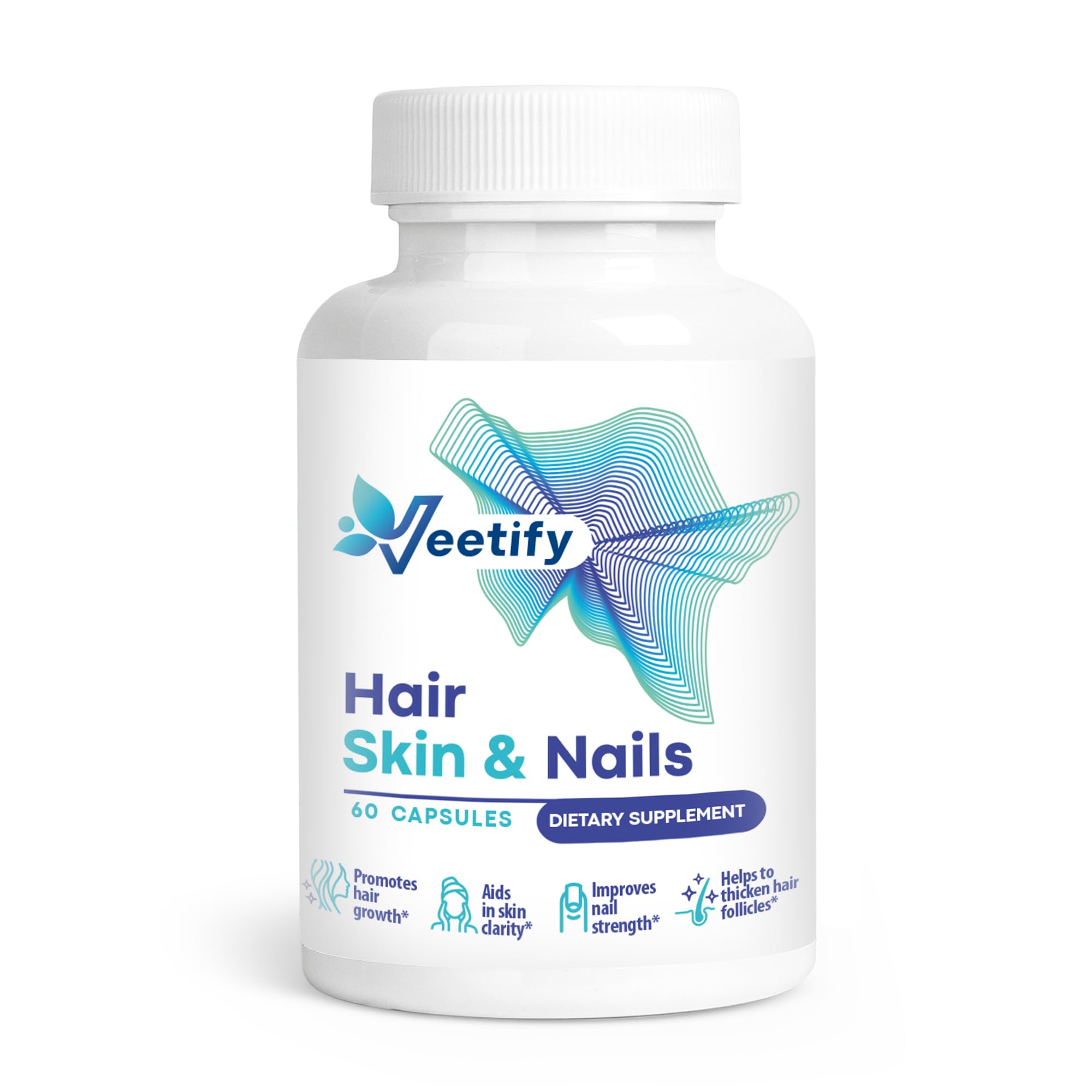 Clean Effective Formula – Vegan capsules, gluten-free, hormone-free, dairy-free, with no artificial colors, flavors, or preservatives. Crafted in a GMP-certified facility and third-party tested for purity. Radiant Skin Youthful Complexion - Powered by Vitamin C, Bamboo-derived Silica, and Antioxidants, Veetify promotes collagen production, skin hydration, and a smooth, glowing complexion, helping fight dullness and early signs of aging. DHT Hormonal Balance Support – Formulated with Saw Palmetto and Plant Sterols to help reduce hair thinning, support healthy hormone balance, and nourish follicles for thicker, fuller hair in both women and men. Essential Vitamins Minerals Complex – With Thiamin, B6, B12, Folate, Zinc, Iron, and Pantothenic Acid, this beauty supplement fuels keratin production, collagen formation, and cellular energy, supporting strong hair, resilient nails, and vibrant skin. Comprehensive Hair, Skin and Nails Vitamins – Herbal Beauty Complex for Growth Glow – Veetify's advanced formula combines Biotin with Fo-Ti, Bamboo, Horsetail, and PABA to help support hair growth, enhance skin radiance, and strengthen nails from within.