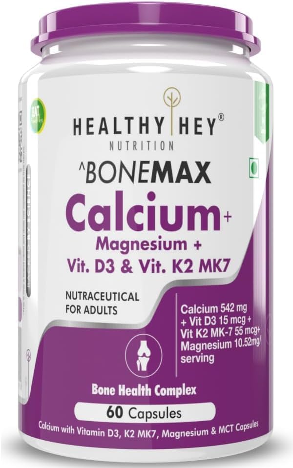 Vegan Calcium with Magnesium Vitamin D3 & Vitamin K2- Mk7 - BoneMax - Bone Health Complex - 60 Vegetable Capsules