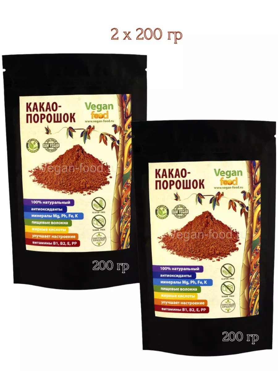 Набор 2 шт по 200 гр какао порошок натуральный Vegan Food
