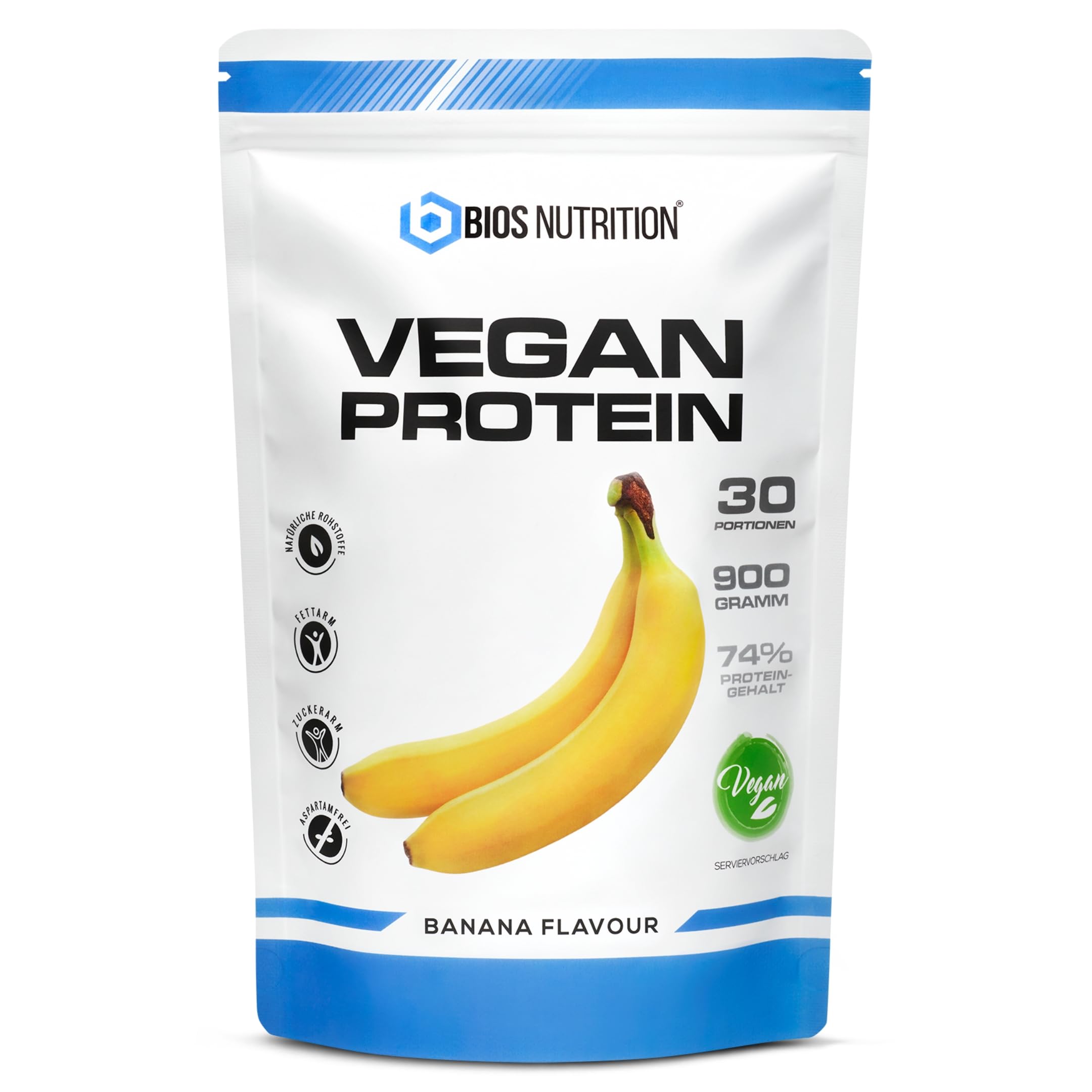 Vegan Protein BANANE 900gr - 4K veganes Proteinpulver - Natürlich lecker im Geschmack - pflanzliches Protein ohne Laktose ohne Soja - BIOS Nutrition (Made in Germany) Banane 900 g (1er Pack)