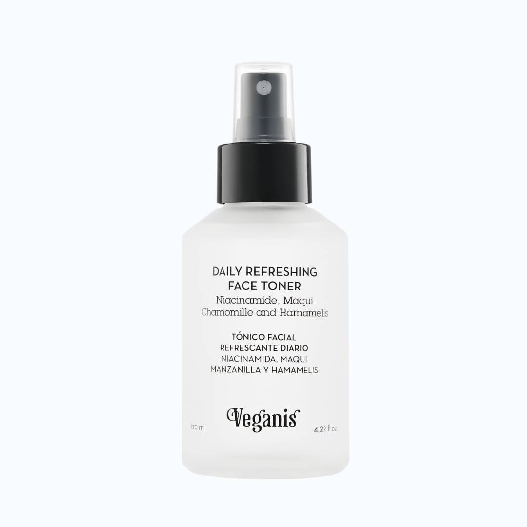 VEGANIS Daily Refreshing Face Toner Mist supports your skin's natural balance with soothing botanical hydration. Niacinamide, Maqui Patagónico, chamomile, and witch hazel help visibly reduce redness, refine pores, and manage excess oil without disrupting the moisture barrier. This gentle, alcohol-free toner removes leftover impurities after cleansing and prepares the skin for subsequent treatments. Apply morning and evening, or mist throughout the day whenever skin feels tired. Suitable for all skin types, including sensitive or redness-prone skin. Dermatologist tested. Vegan, cruelty-free, and paraben-free.