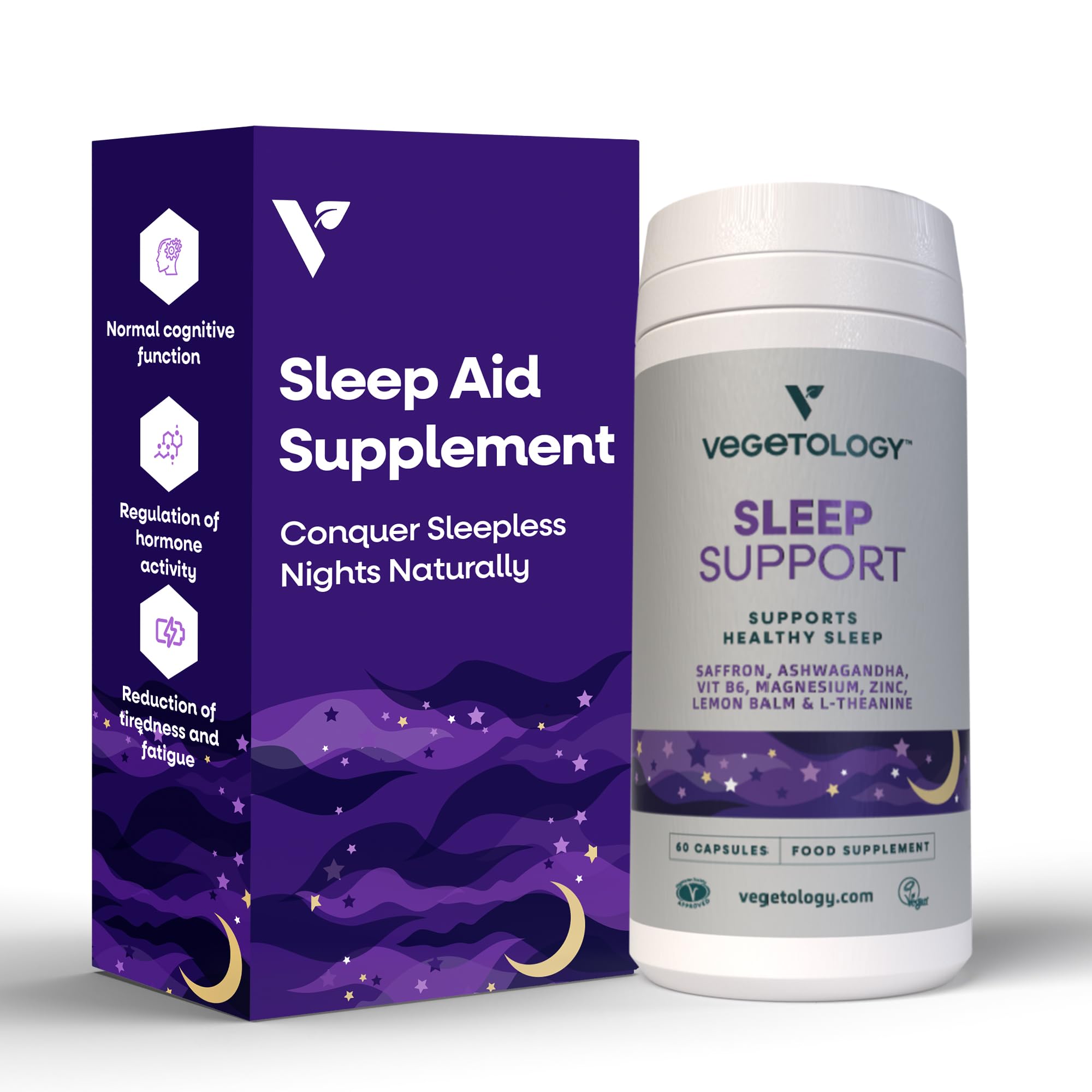 VEGETOLOGY Sleep Support Vegan Supplements (60 Capsules) Deep Sleep Supplements for Adults and Children Sleep Calm Food Supplement Healthy Sleep Aid Supplements to Help Sleep