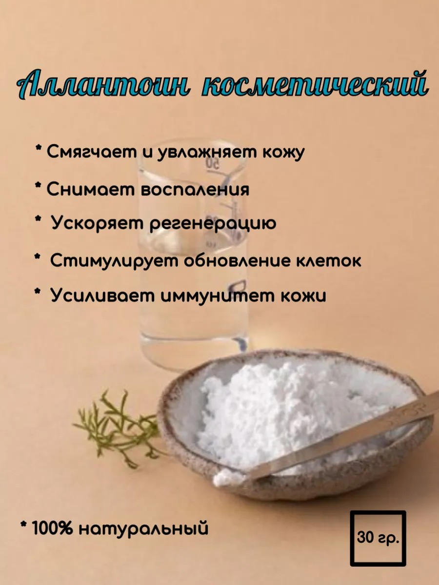 Аллантоин - это один из популярных компонентов. В его составе есть глюкоза, фруктоза, гликозиды, каротины, мукополисахариды и другие полезные вещества, которые благоприятно воздействуют на кожные покровы и организм в целом. Средства с ним назначаются для восстановления после довольно агрессивных процедур: пилингов или определённых аппаратов. Стимулирует обновление клеток, а также выработку собственного коллагена. Это делает кожу более здоровой, упругой, эластичной и плотной, усиливает её иммунитет, благодаря чему она отлично противостоит негативным факторам окружающей среды. Качественно увлажняет, не только поверхностно, но и на глубоких слоях ( для сухой, обезвоженной, а также чувствительной и проблемной ). Эффект от такого увлажнения накопительный, поэтому лучше всего проявляется при регулярном применении. Благотворное воздействие на воспалённые, раздражённые участки, успокаивает и помогает снимать воспаление и раздражение, ускоряет заживление и укрепляет ткани. Благодаря этому его используют не только в косметологии, но и в медицине. Предназначенных для лечения различных дерматитов и других заболеваний.