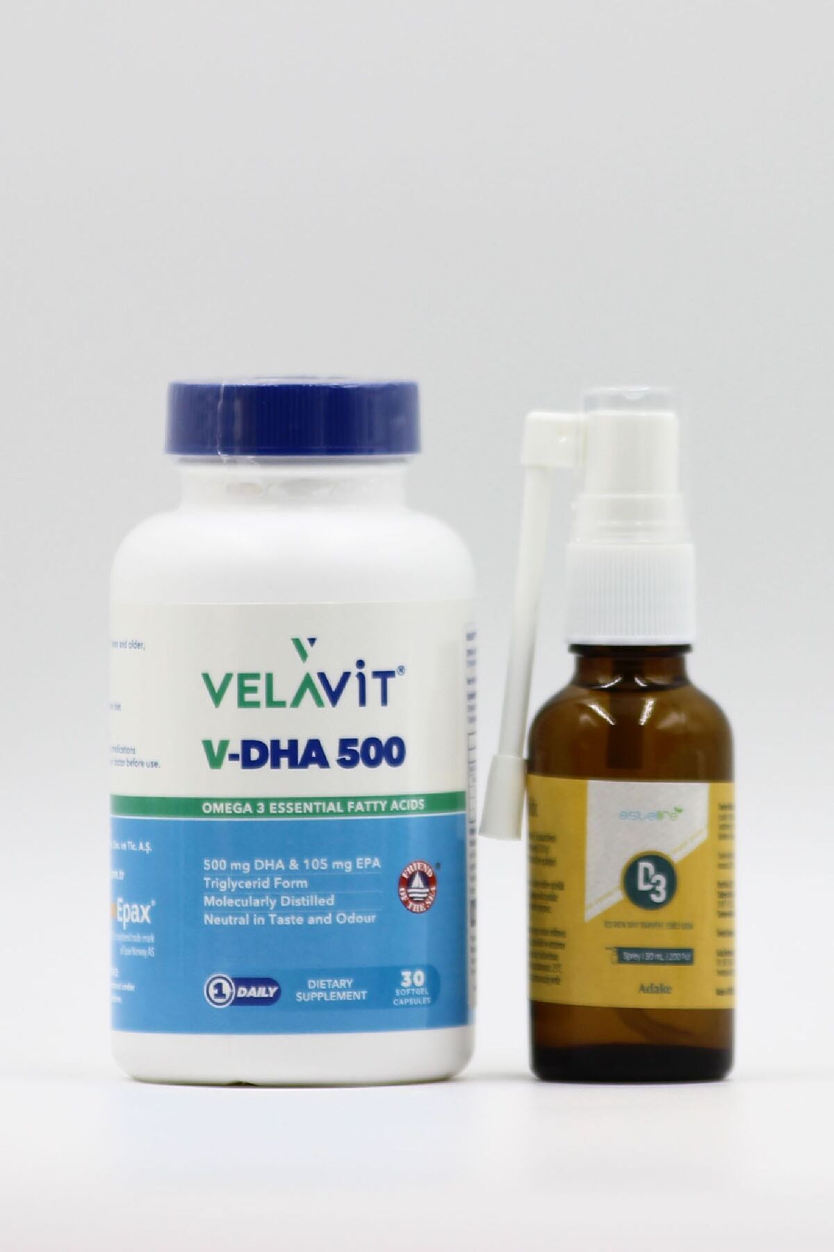 Velavit v-Dha 500 omega-3 30 kapsül estellife d3 sprey 30 ml