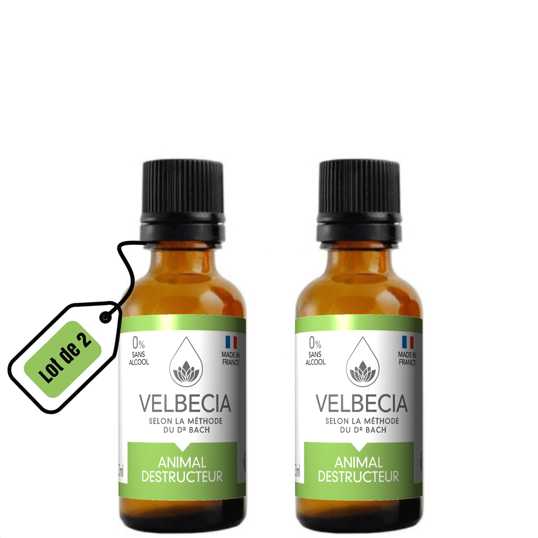 Velbecia - Dr Bach Flowers Destructive Animal 30ml +1 FREE - ALCOHOL FREE - So that your animal keeps its cool especially when left alone