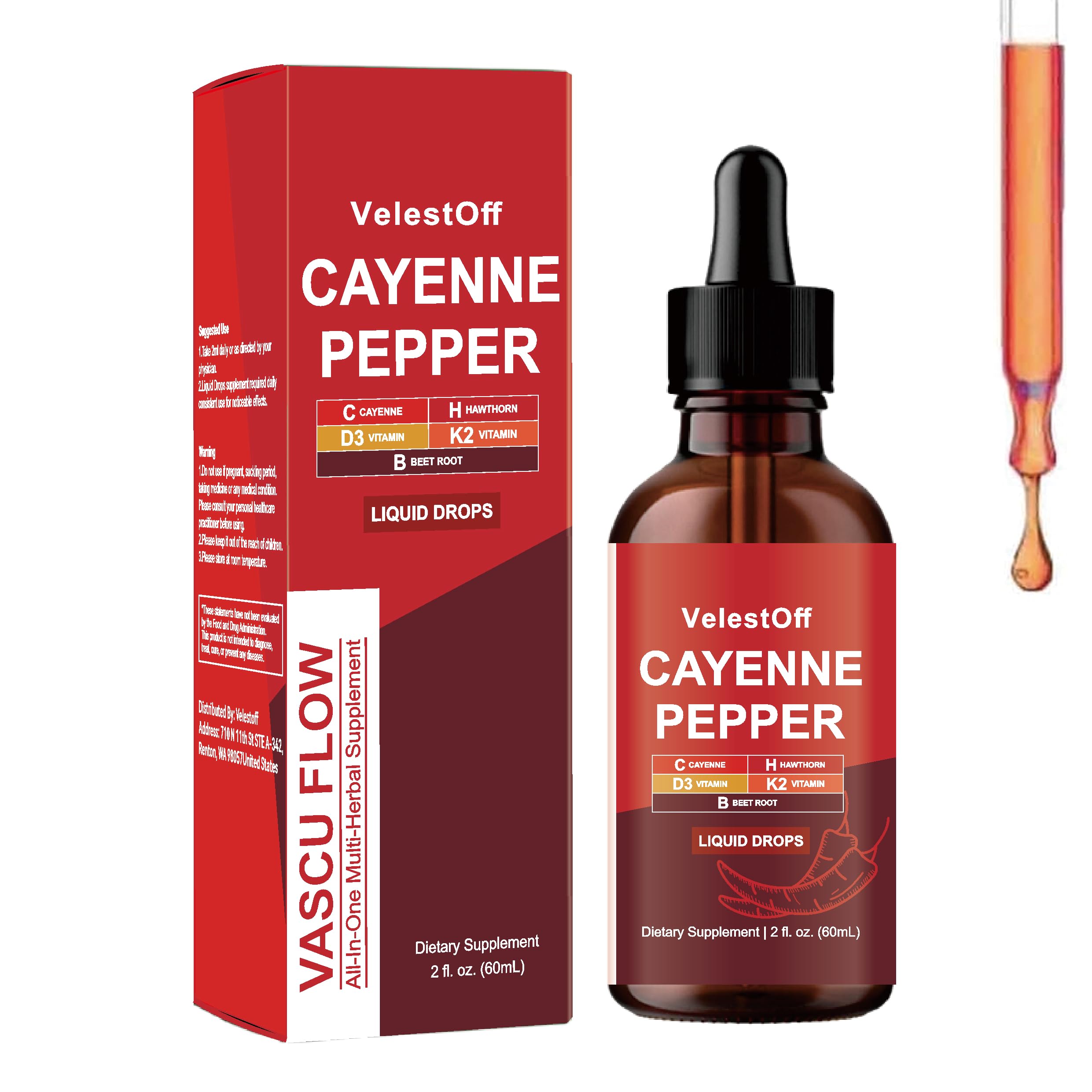Generous Supply Each bottle contains 60 mL (2 FL. OZ.) of liquid, providing a convenient and lasting supply to support your wellness journey. Easy Usage Instructions Gently shake the bottle before use. Take 1 to 2 drops per serving, once or twice daily, as part of your daily health routine. Optimal Storage Guidelines For best results, store the bottle in a cool, dry area, shielded from direct sunlight. This helps preserve the quality and effectiveness of the formula over time. Gentle Smooth Taste Experience Unlike typical chili extracts, this preparation is crafted to be exceptionally mild. Our glycerin base ensures a smooth and pleasant taste, completely free from any burning or discomfort. Key Ingredients Benefits This unique formula combines Cayenne Pepper, Hawthorn, Beet Root, Turmeric, and Vitamins K2 D3. Each ingredient is carefully selected to contribute to your overall wellness, supporting circulation, energy, and vitality without any harsh sensations.