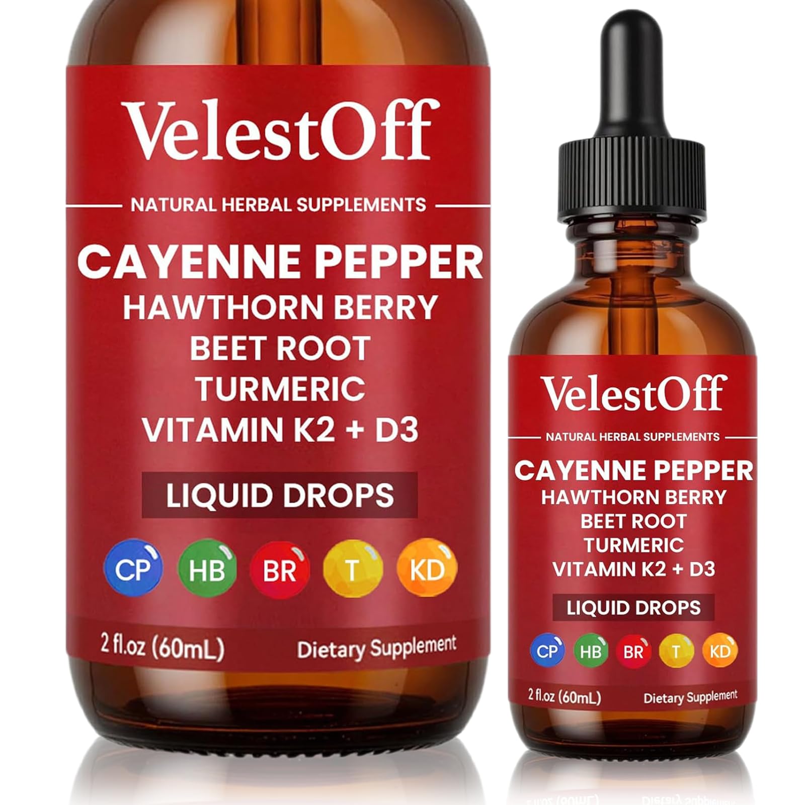 Velestoff Cayenne Pepper Drops Cayenne Circulation Blend with Hawthorn Beet Root Turmeric Vitamin K2 D3 - Vegan Non-GMO - 2FL.OZ (1 PCS)